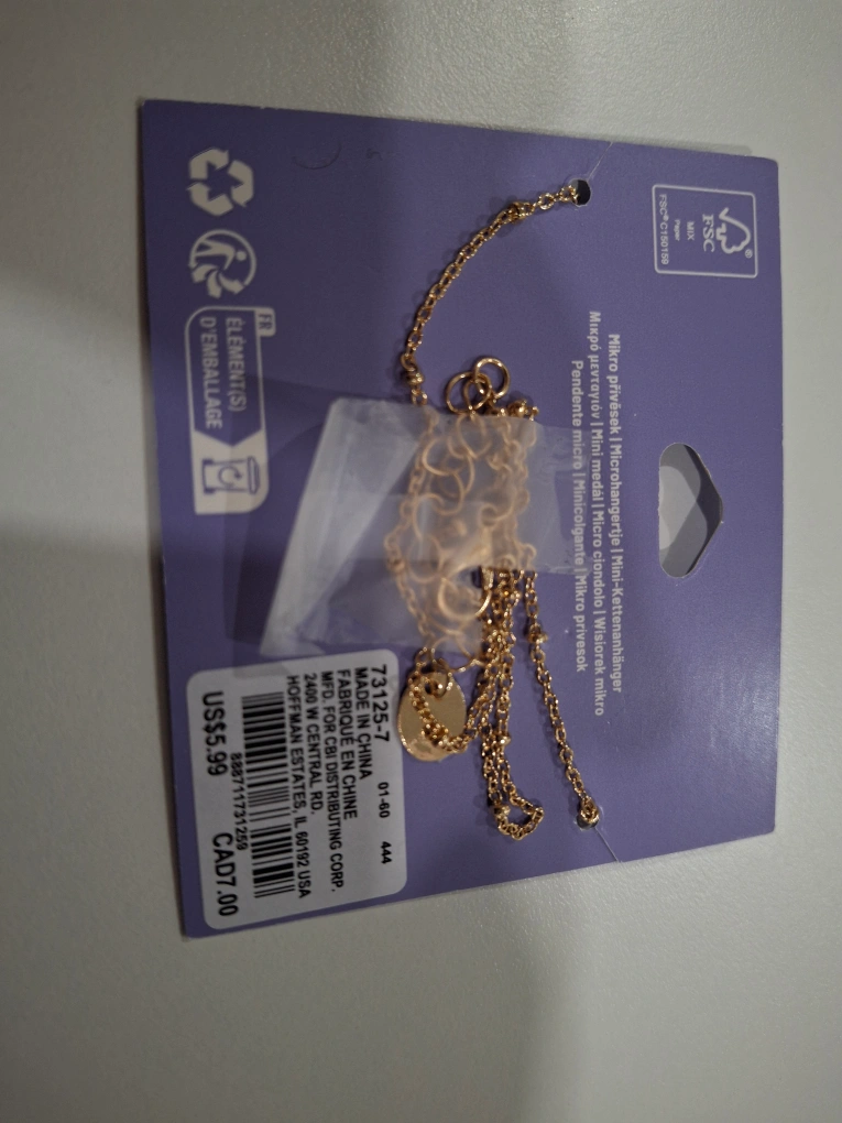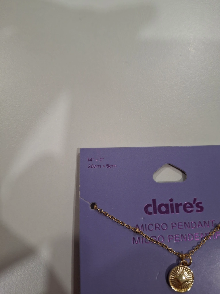 New gold necklace with a small coin-like pendant. Delicate chain. Measures 14" + 2" extender. Purchased from Claire's.