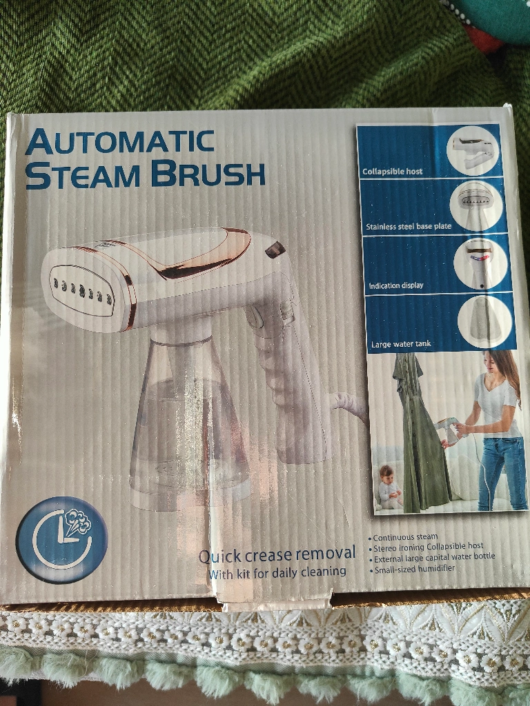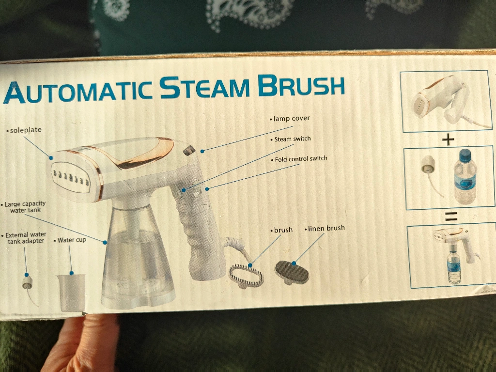 Brand new Handheld garment steamer. Features a large water tank, continuous steam, and multiple brush attachments. Ideal for quick crease removal and daily cleaning.