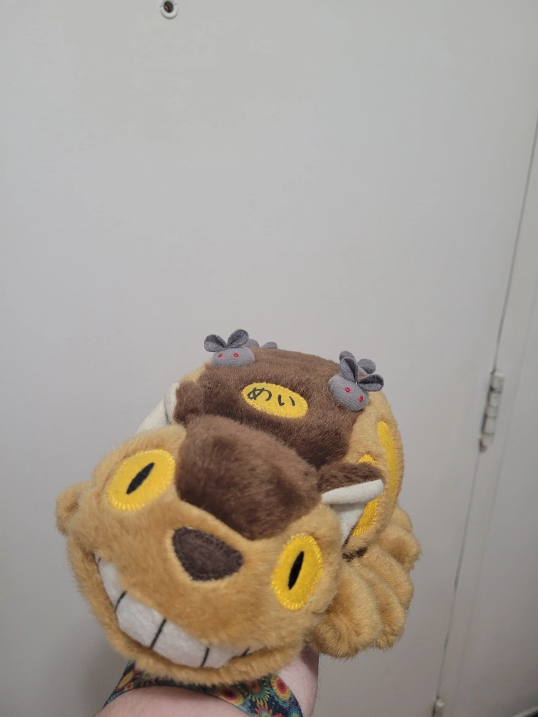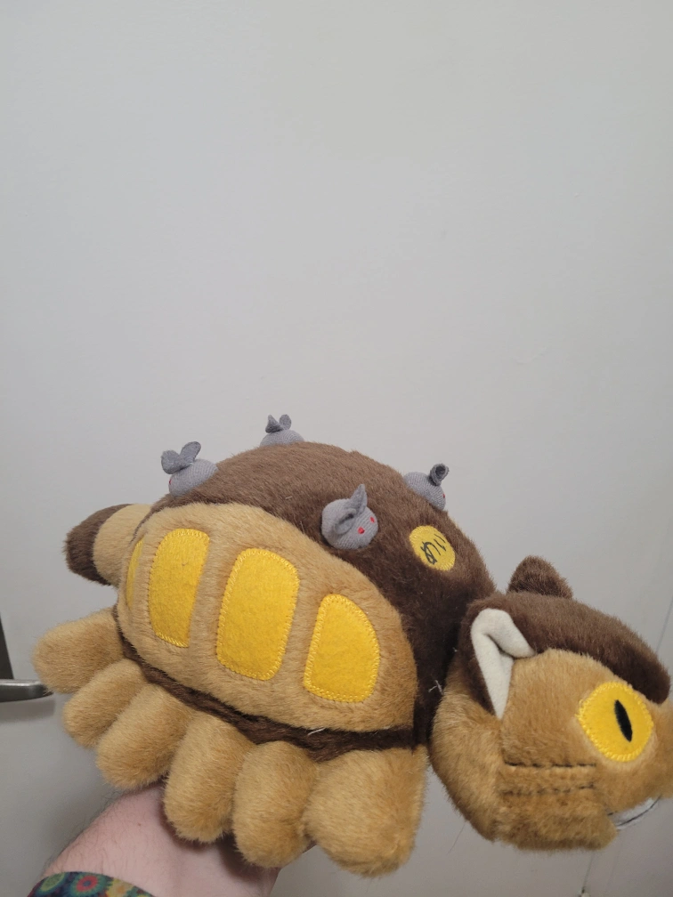 Adorable Studio Ghibli Catbus plush. Brown and tan colour scheme. Features small mouse plushies on its back. Excellent condition. Collectible item.