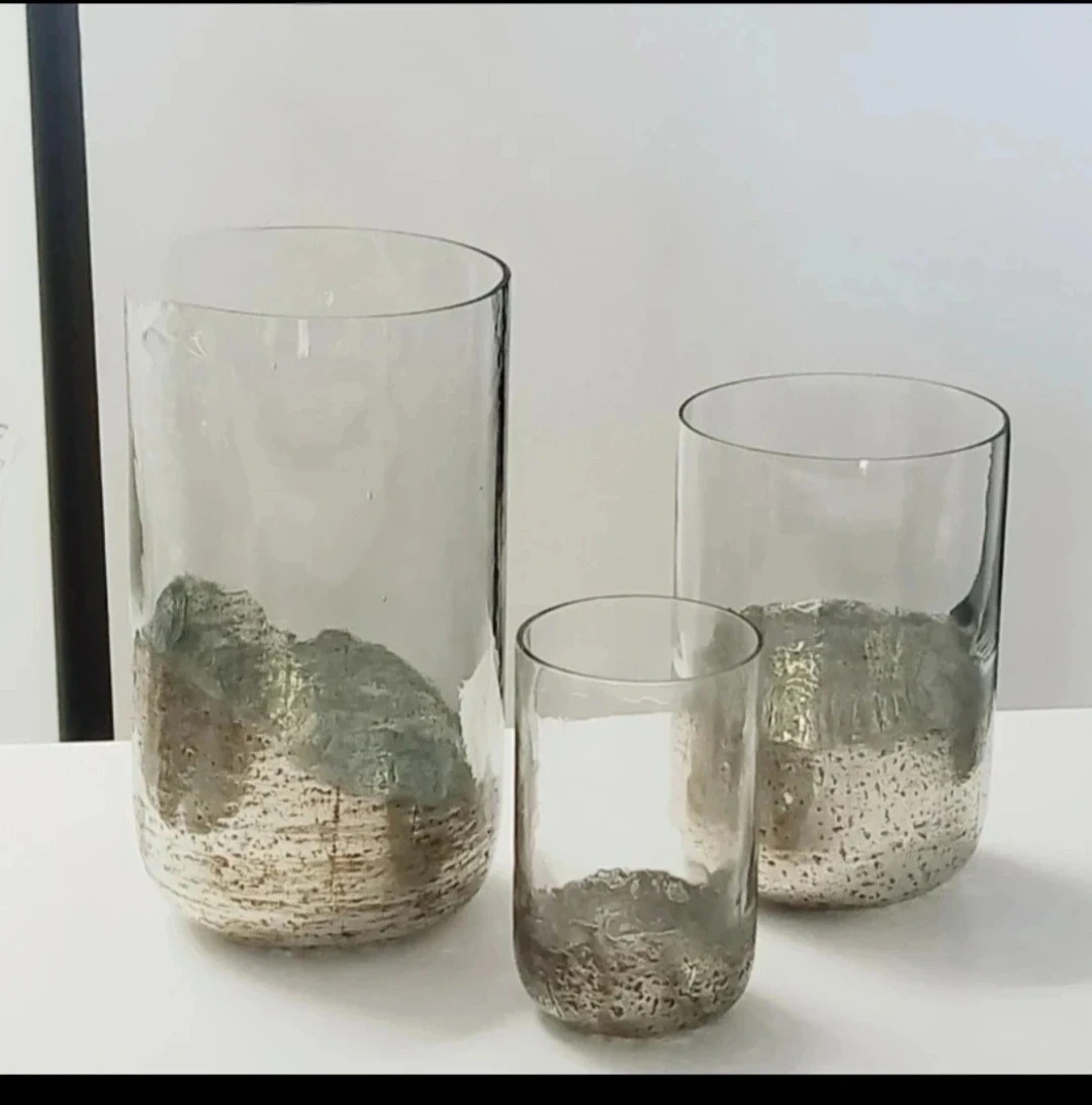 artisan made / home decor / French country / glass vase / hurricane vases / farmhouse style / shelf decor / coffee table decor / chic decor / large vase / tall vase / candle holder / large vase