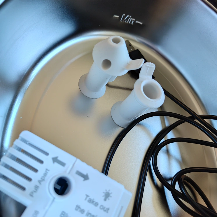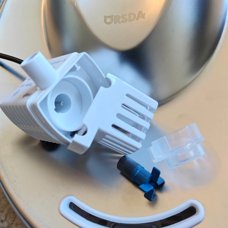 Stainless steel top and pump assembly. Includes pump, filter, and other small parts. Suitable for ORSDA pet fountains. Used but in good condition.