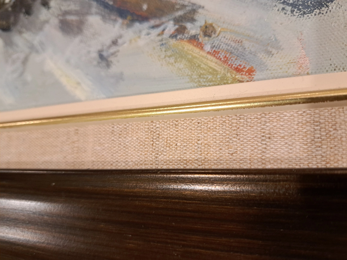 30.5"x43" Framed Oil Painting of Snowy European Street Scene