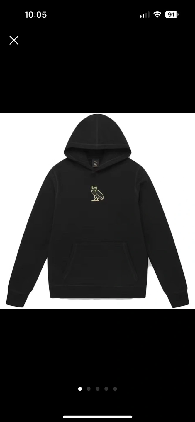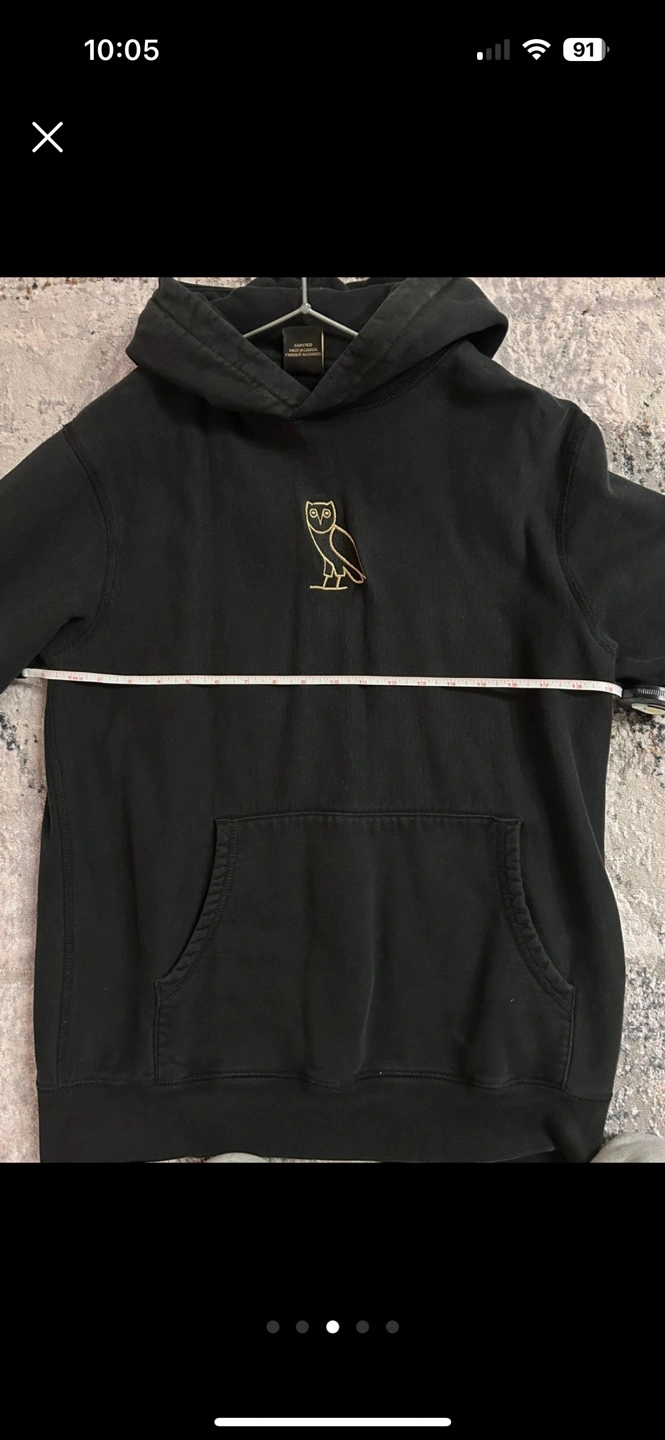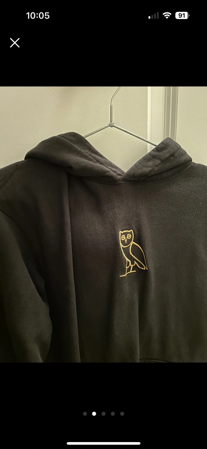 Men's black OVO hoodie. Features a gold owl logo. Long sleeves, kangaroo pocket. Good condition.