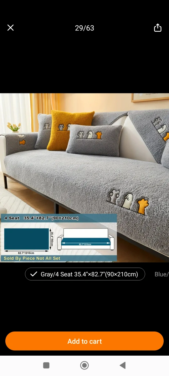 Grey sofa cover. Polyester. Sherpa fabric. Machine washable. Pet-friendly. Non-slip.