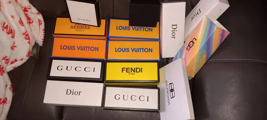 Brand boxes. Includes G Louis Vuitton, Dior, Hermes, Fendi, jo malone and Balenciaga. Perfect for organizing or crafting.