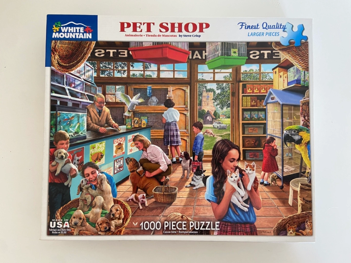 - 1000-piece jigsaw puzzle depicting a pet shop scene
