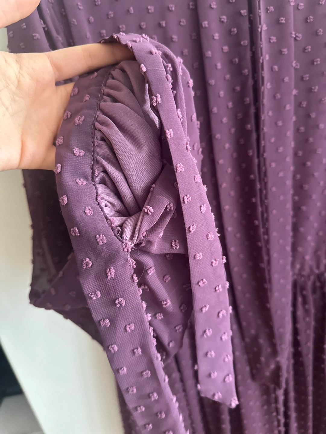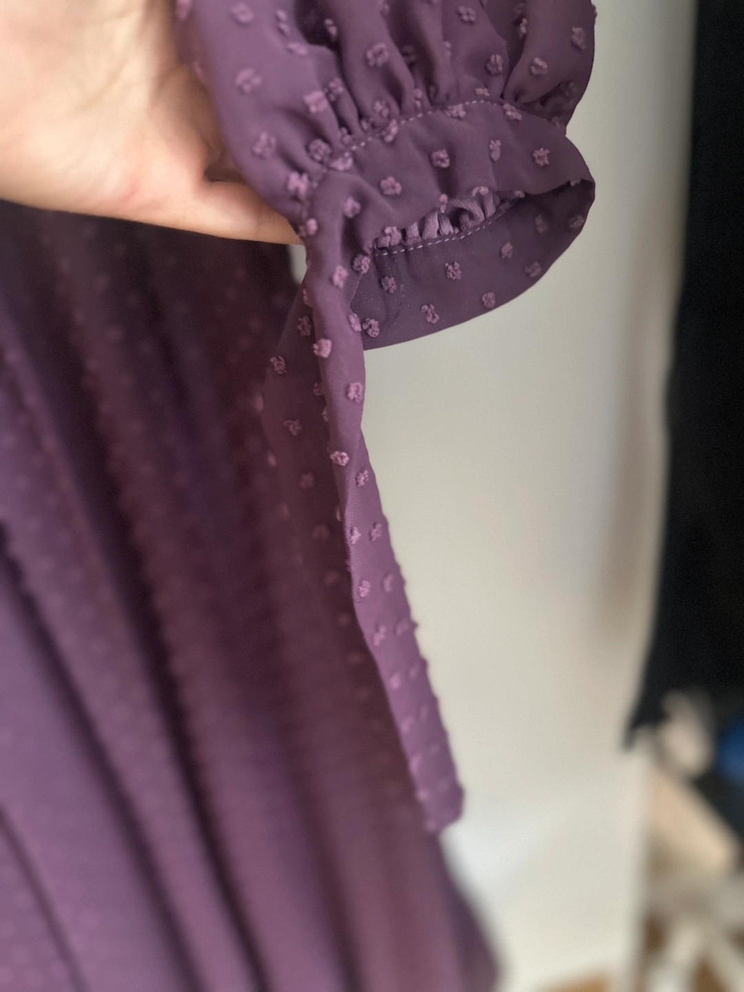 Purple Swiss Dot Maxi Dress with Sleeves