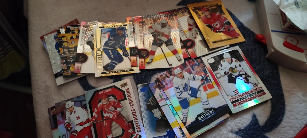 Collection of hockey cards. Includes several different players and teams. Great for collectors or enthusiasts.20$ each card