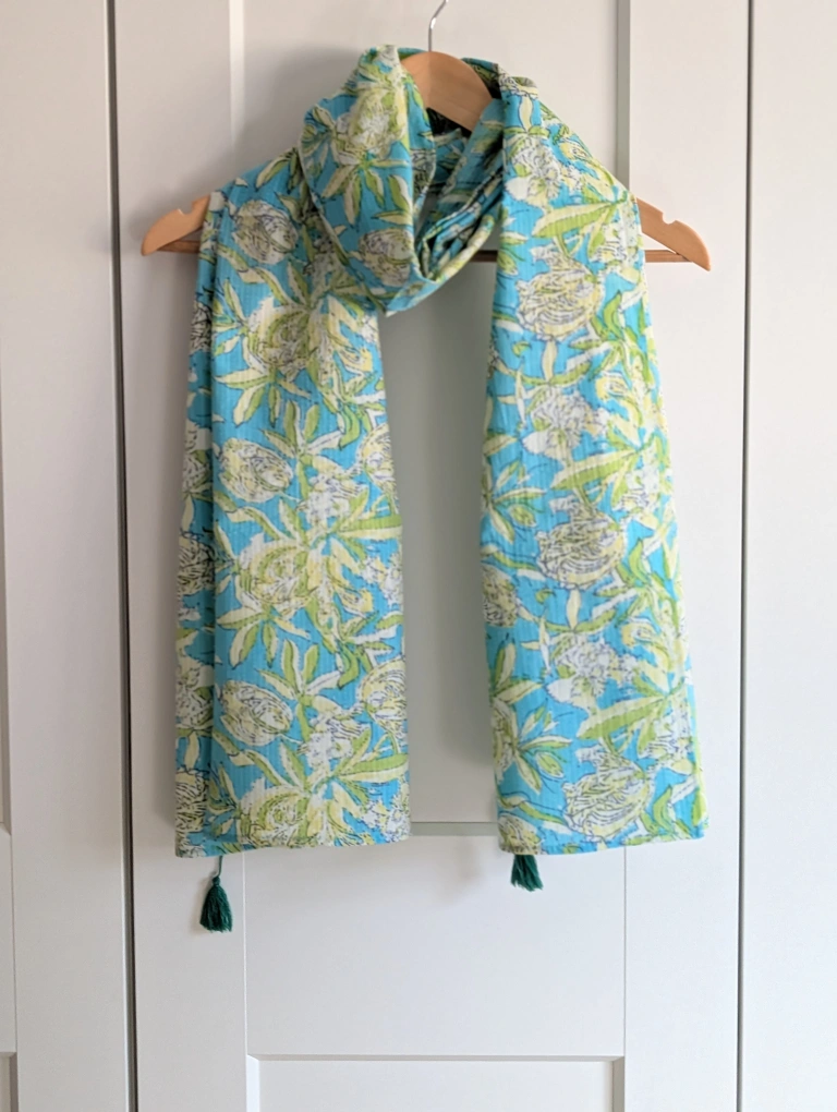 BN Beautiful floral Kantha cotton scarf, 100% cotton