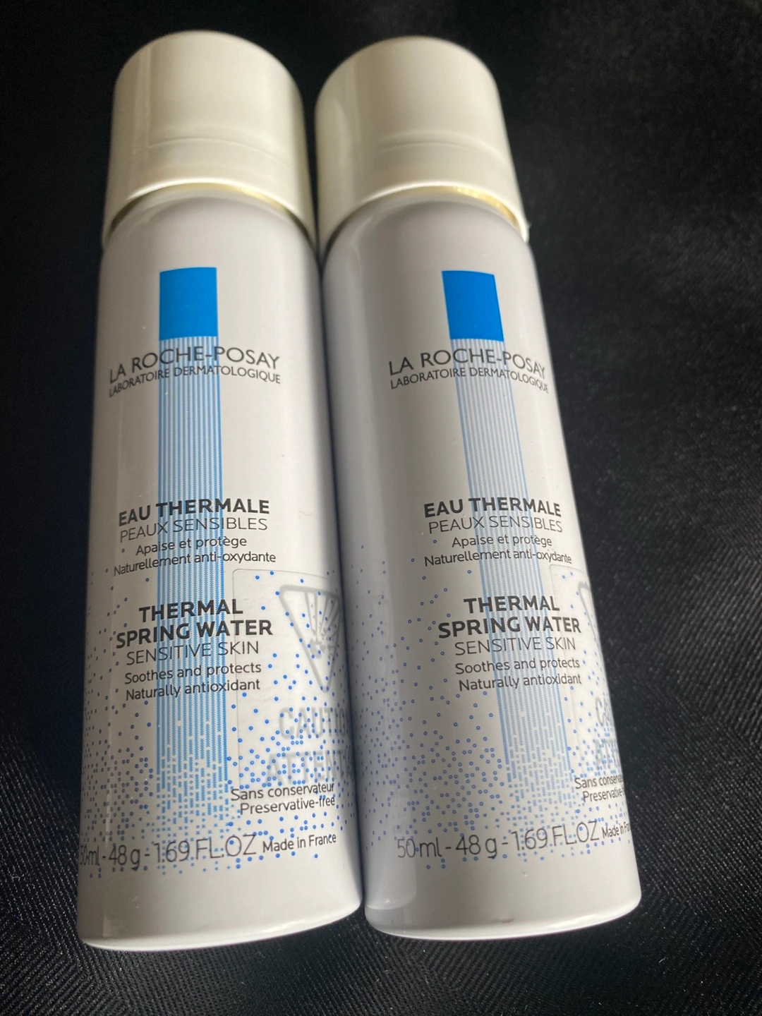 Two 50ml bottles of La Roche-Posay Thermal Spring Water. Soothes and protects sensitive skin. Naturally antioxidant. Preservative-free. Made in France. $10 for both.