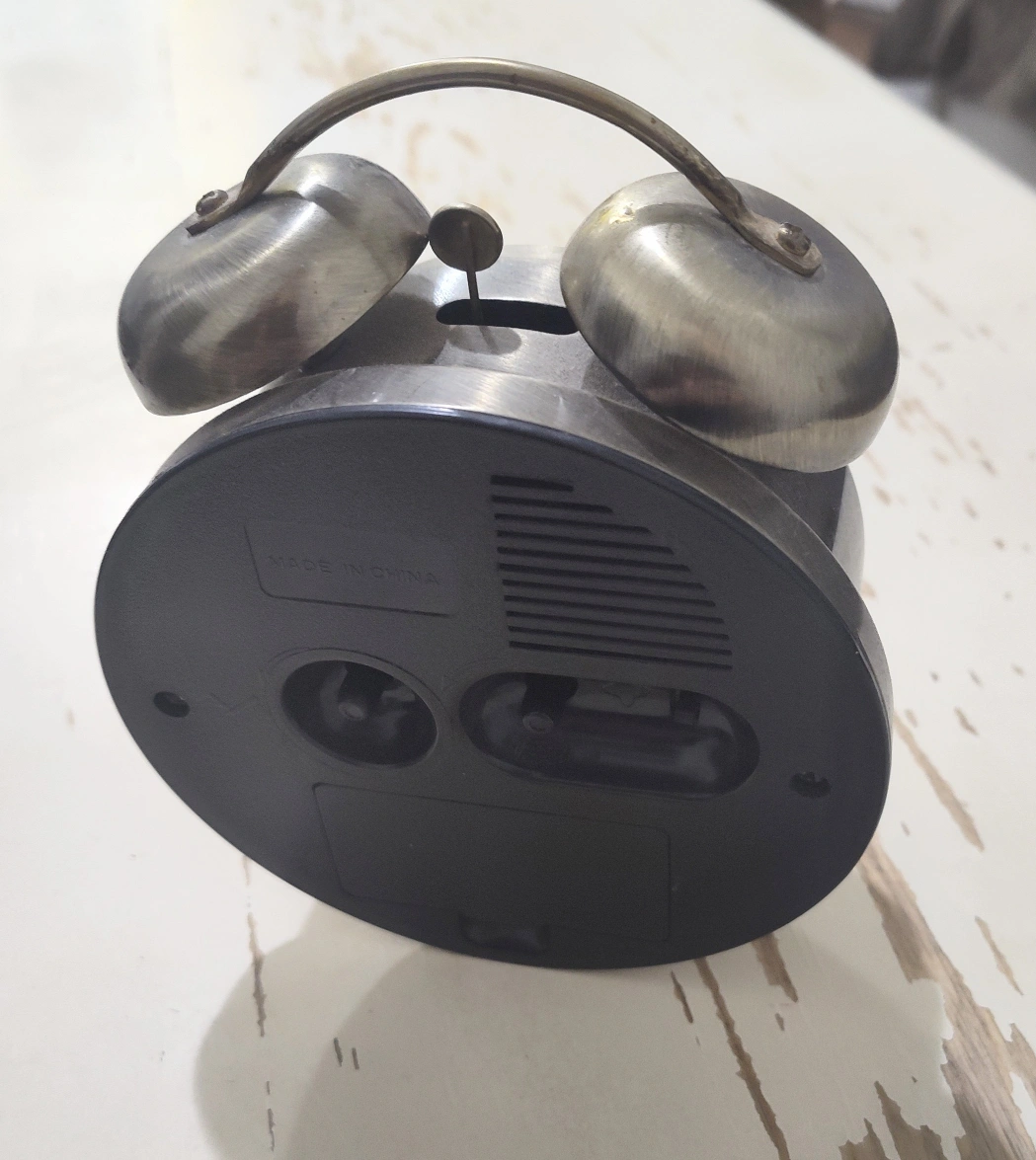 Vintage metal alarm clock. Dual bells. Easy-to-read face. Great for bedside table. BRAND NEW battery included.