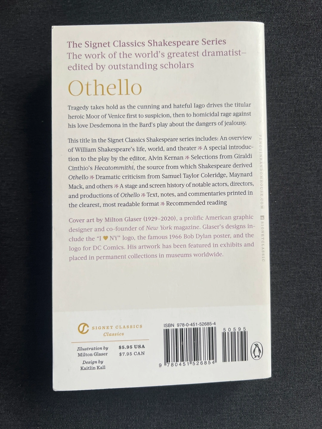 Paperback edition of Shakespeare's Othello. Signet Classics series.