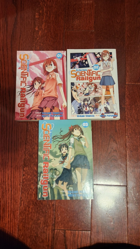 Lot of 3!! You get all 3 for $15!!! Three volumes of the A Certain Scientific Railgun manga. Volumes 1, 2, and 3. perfect condition. Perfect for fans of the series.