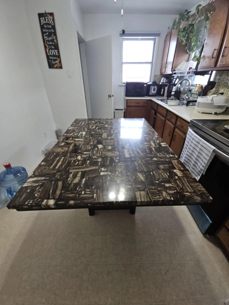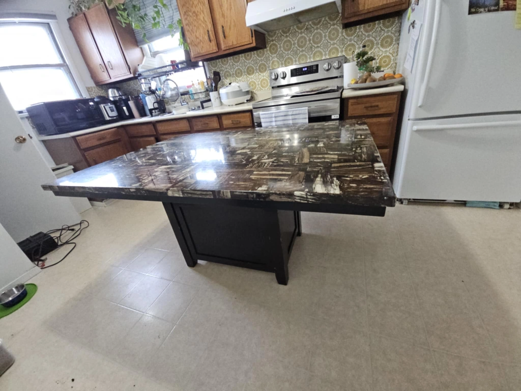 Buy & SellPetrified Wood Kitchen Island TablePetrified Wood Kitchen Island Table$75Large square kitchen island table. Petrified wood top. Black base with storage. Unique piece. Has storage. 60L42 W top measurement 28L 20 W Bottom measurementWHERE TO MEETcindy klassenView MapSELLERverifiedIceSargent Park630 reviews0 chats·1 favorites·239 viewsSEND CHAT TO SELLERHi Ice! I’m interested in your listing.Hi Ice! I’m interested in your listing.Get the Karrot app to chatSign In to chat