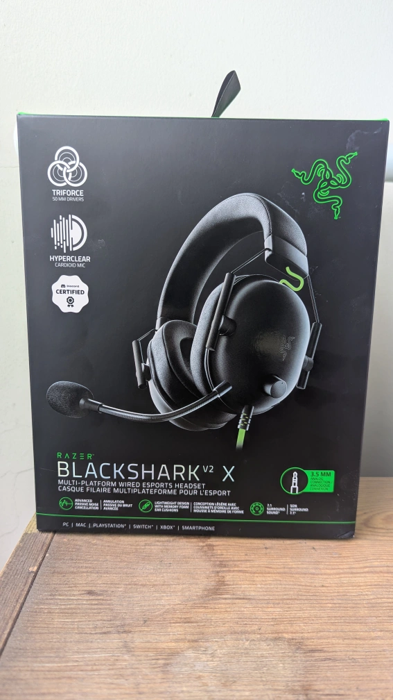 Wired gaming headset. Black colour. Lightweight and comfortable. Includes microphone. Compatible with PC, Mac, PlayStation, Switch, Xbox, and smartphone.