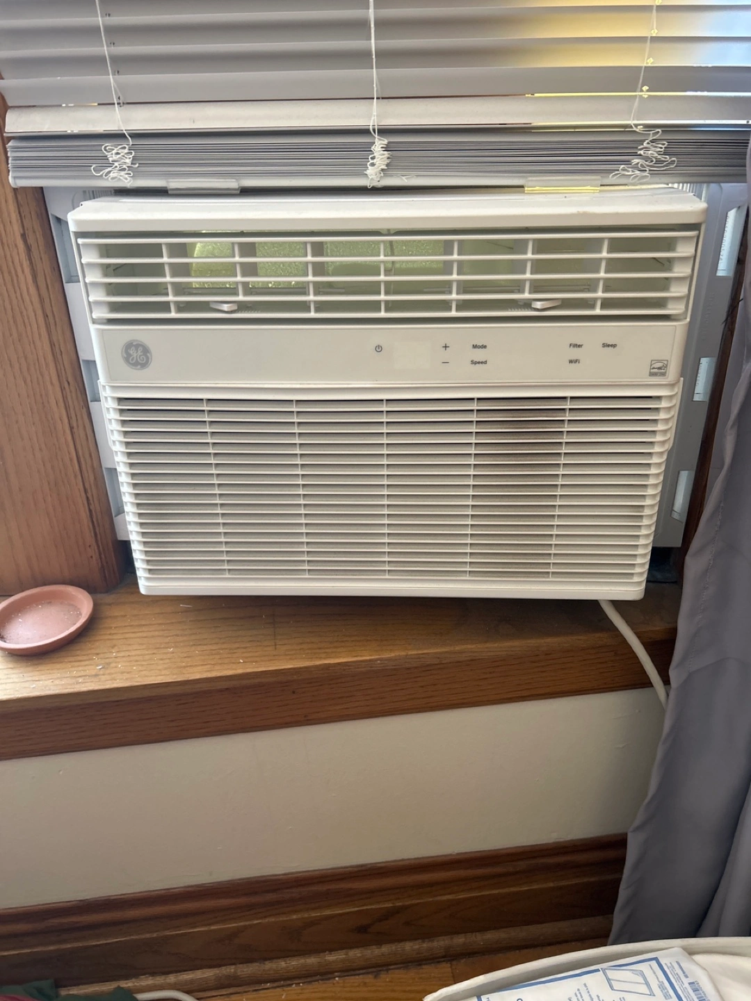 White window AC unit. Includes remote control. Features multiple modes, sleep function, and WiFi capabilities. Good condition. Works with Alexa and other home AI systems. Control with Alexa , the included remote control, or the GE app. Lightly used and in fantastic shape. $325 paid new a year or two ago. I’m moving and have no need for a window unit anymore. Summer is coming so get set ahead of time. Can deliver if not far or can meet somewhere in the City.