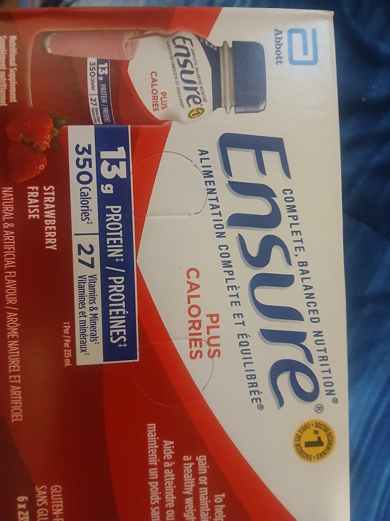 3 Boxes of Ensure Plus Calories strawberry chocolate an Butter Pecan flavour nutritional supplement. Complete balanced nutrition. 350 calories, 13g protein. Vitamins and minerals. Gluten-free. 3 boxes 24 in box for $45 or 1 for $20