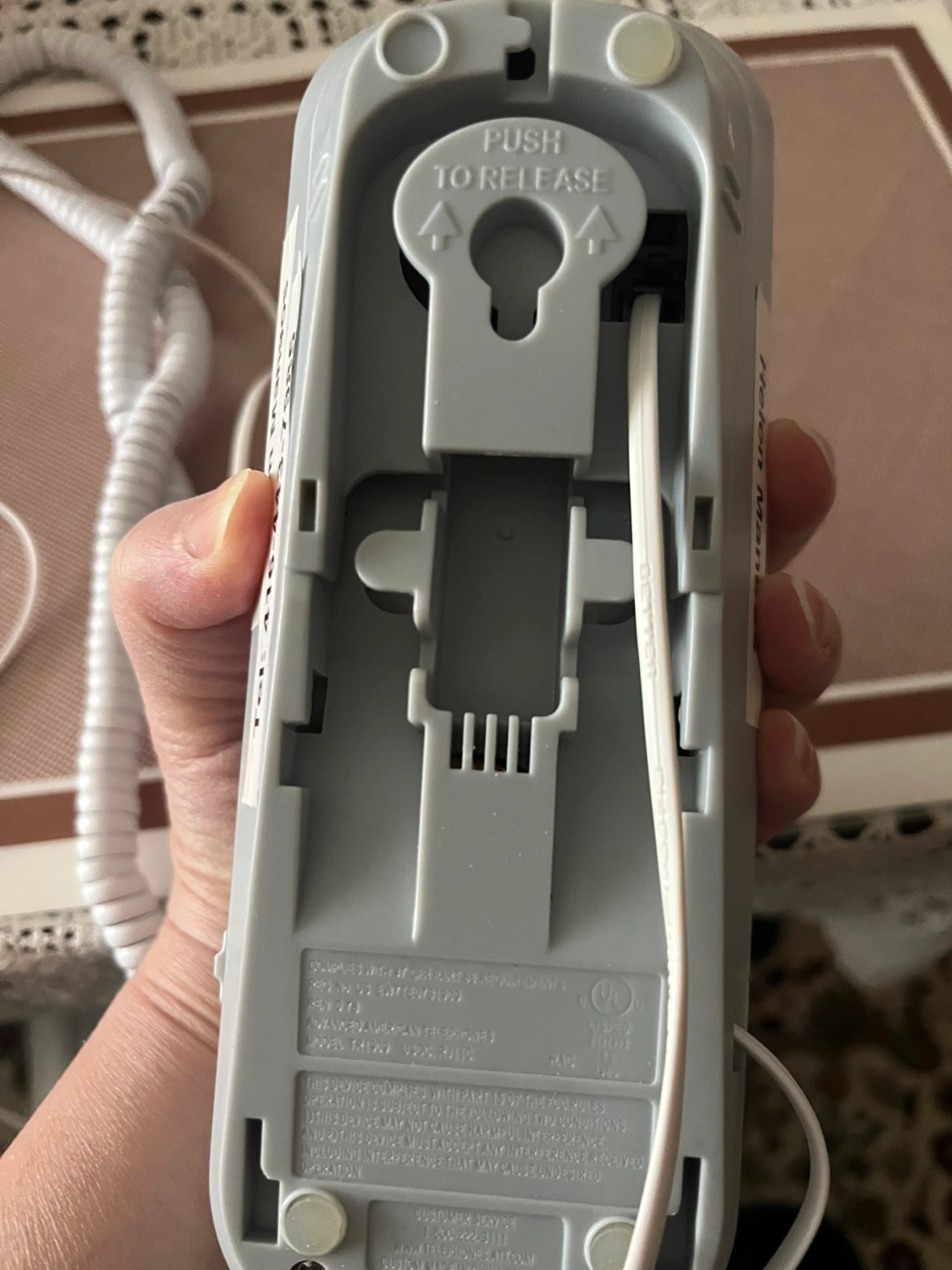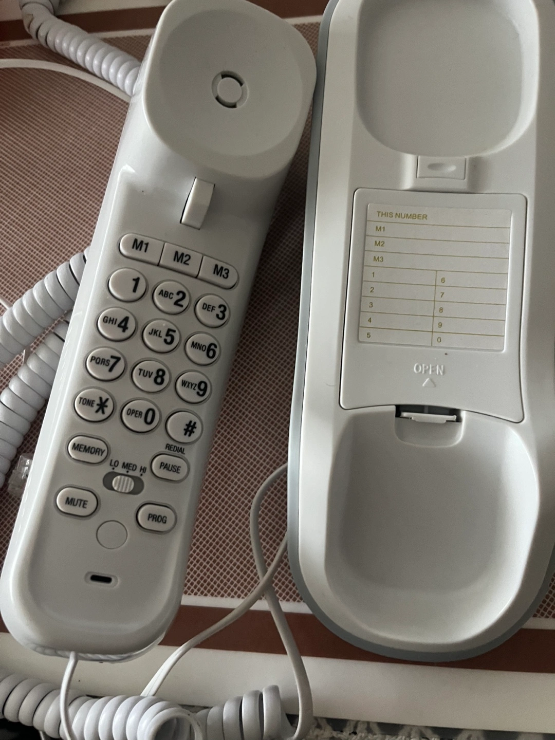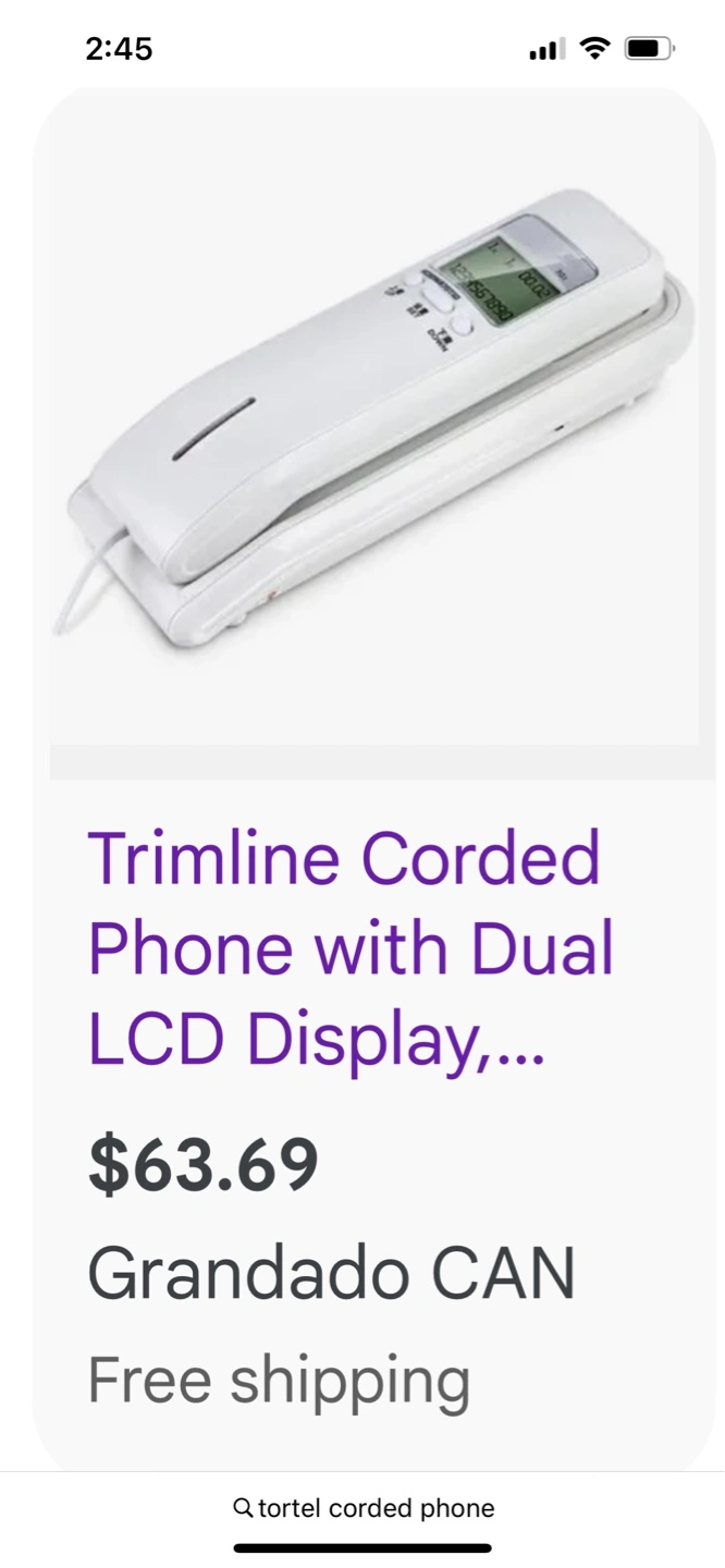 NEW Corded phone, dual LCD display, white and grey.