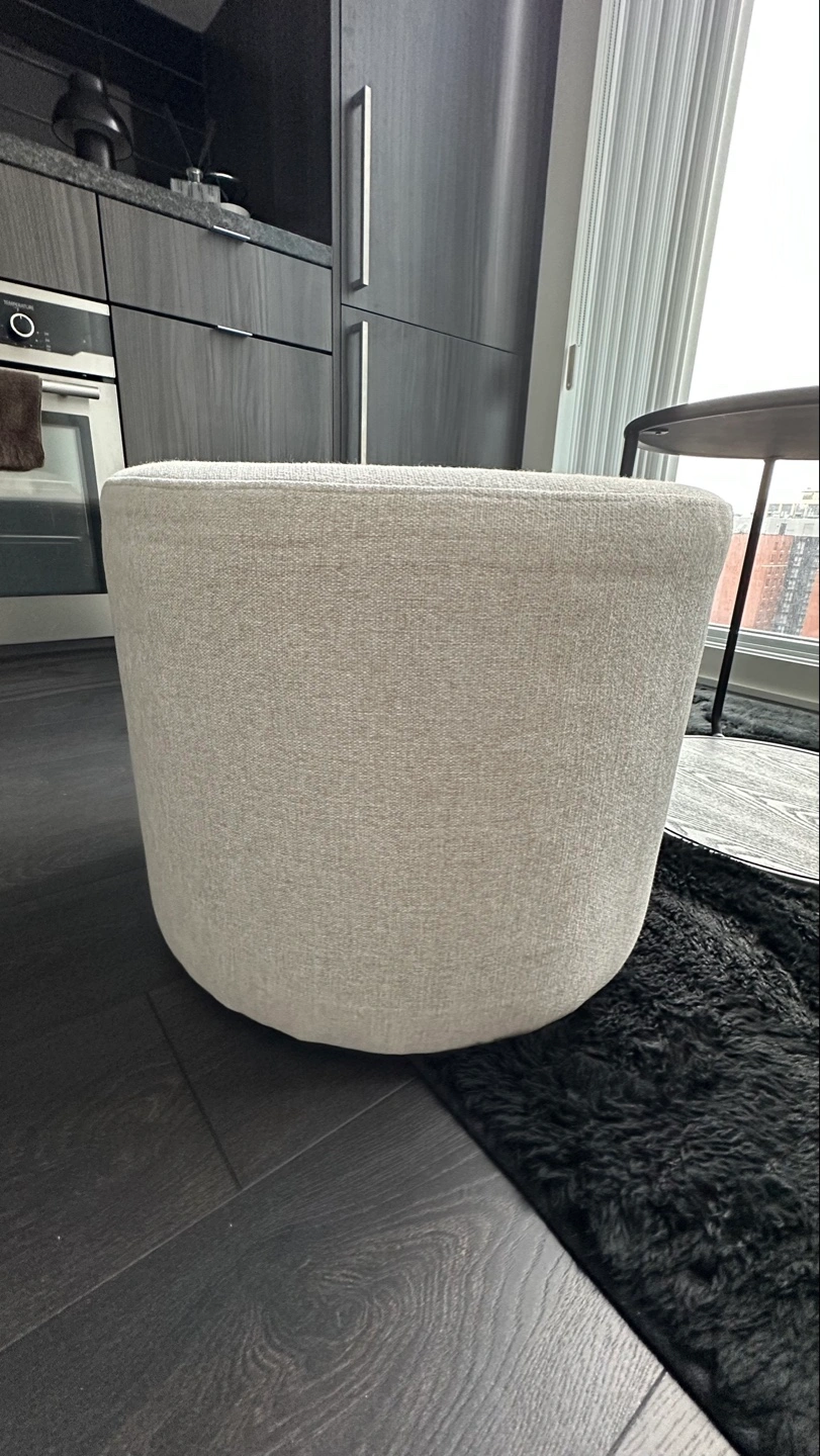 Bouclair Black Round Side Table and Beige Ottoman Set