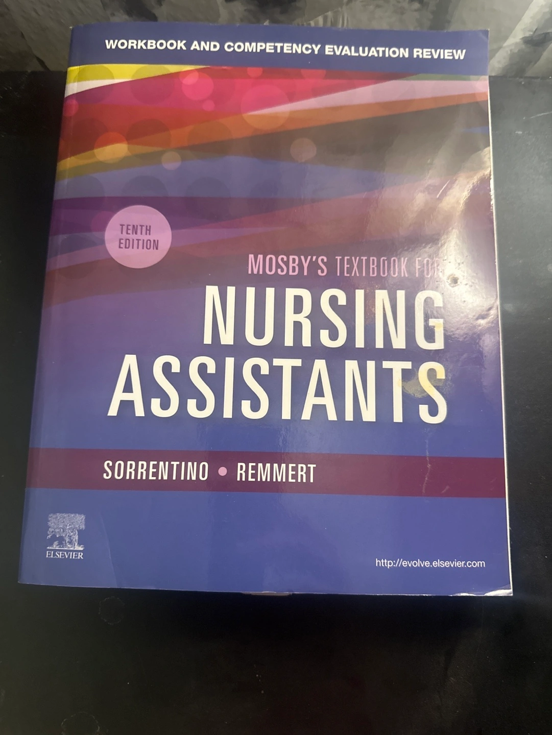 Textbook for nursing assistants. Tenth edition. Workbook and competency evaluation review included. Authors: Sorrentino & Remmert. Publisher: Elsevier.