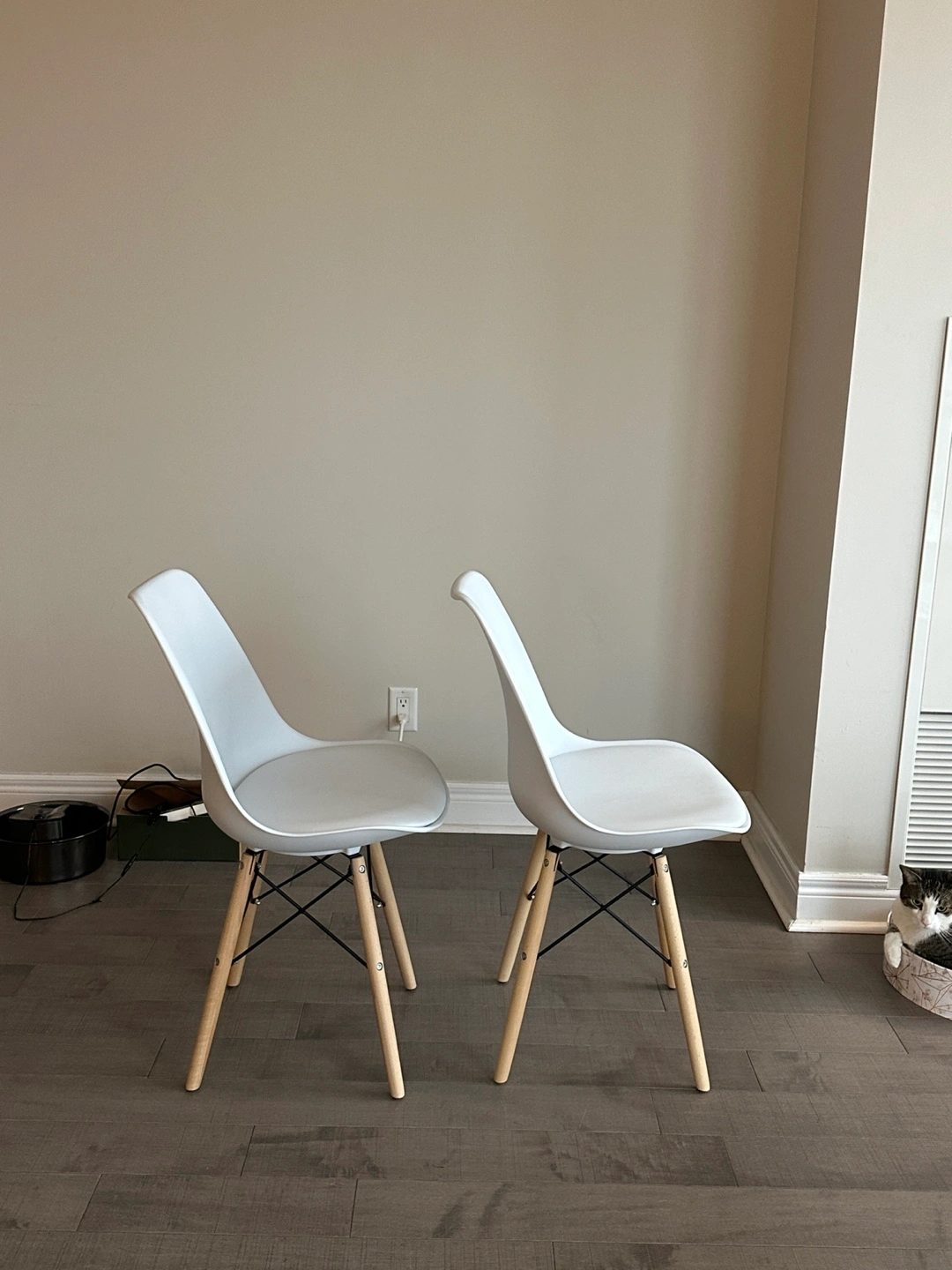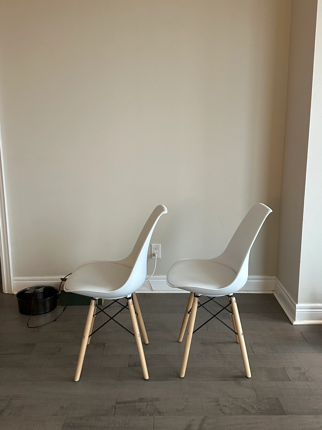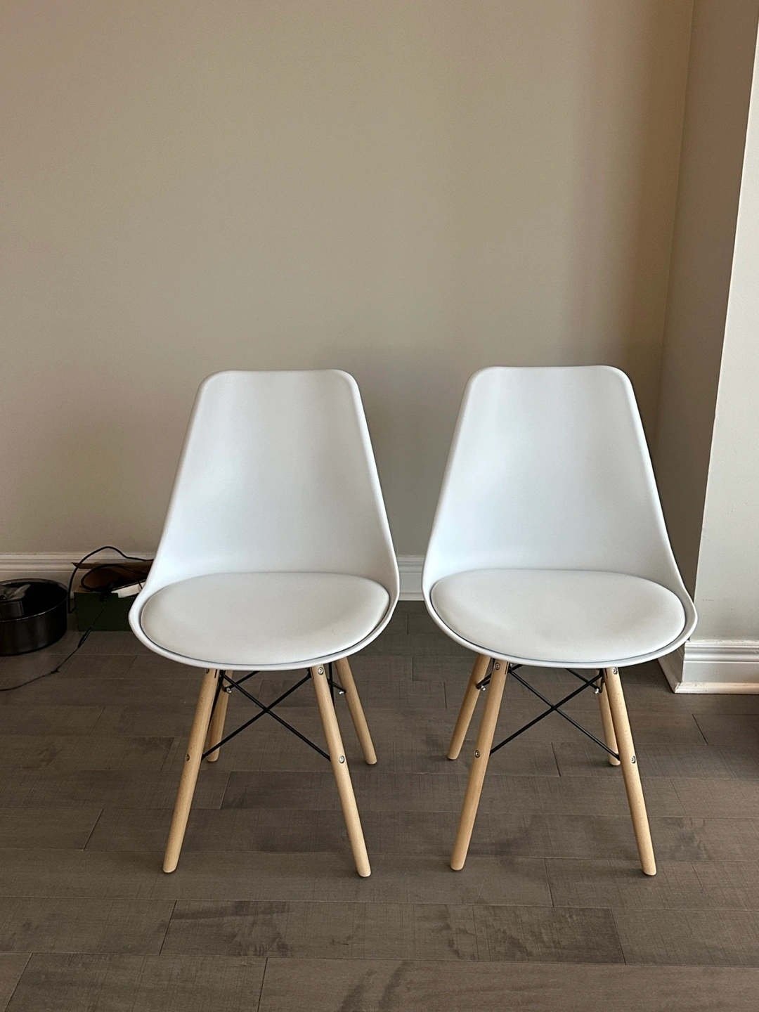 Two modern dining chairs.