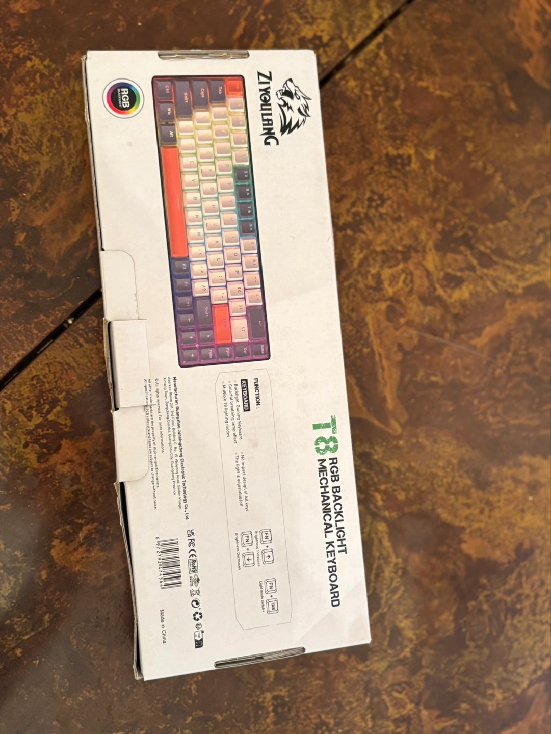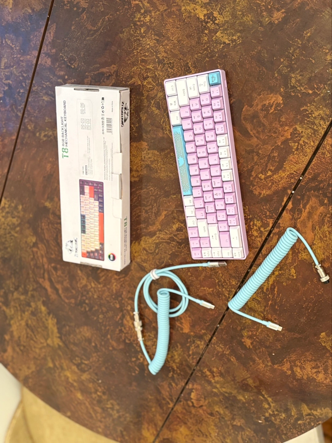 61-key mechanical keyboard. RGB backlit. Includes two detachable coiled cables. Compact and colourful design. Excellent for gaming or typing.