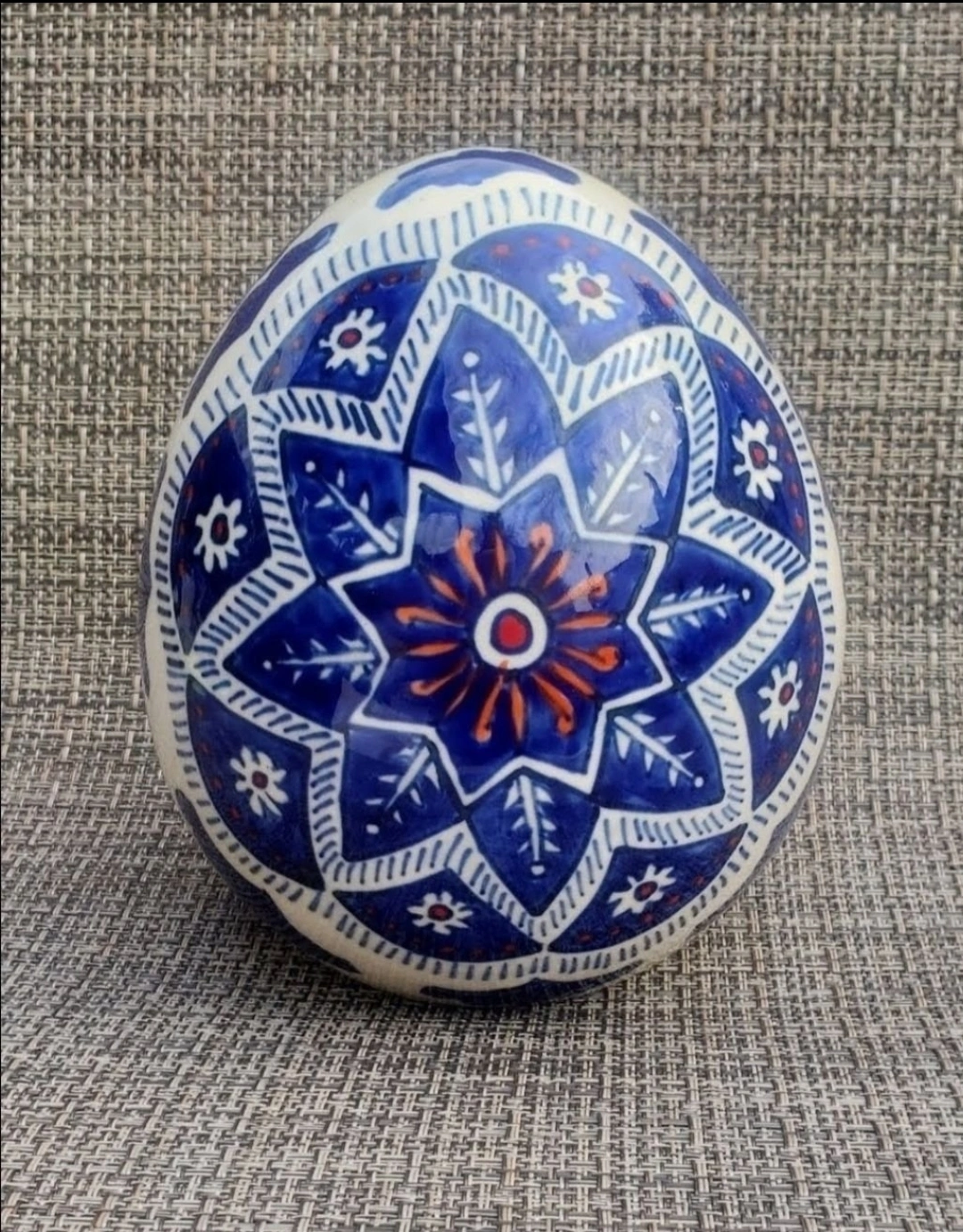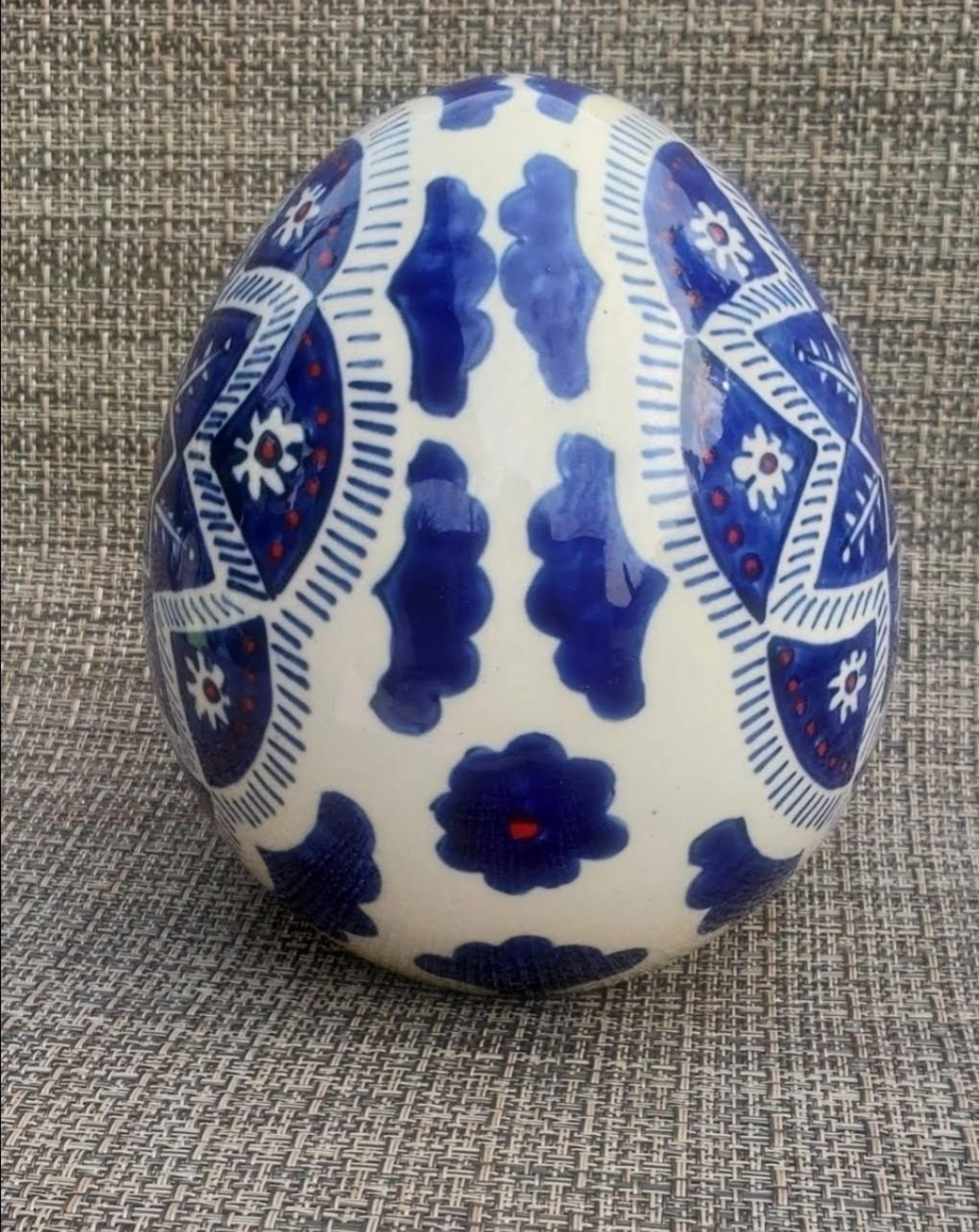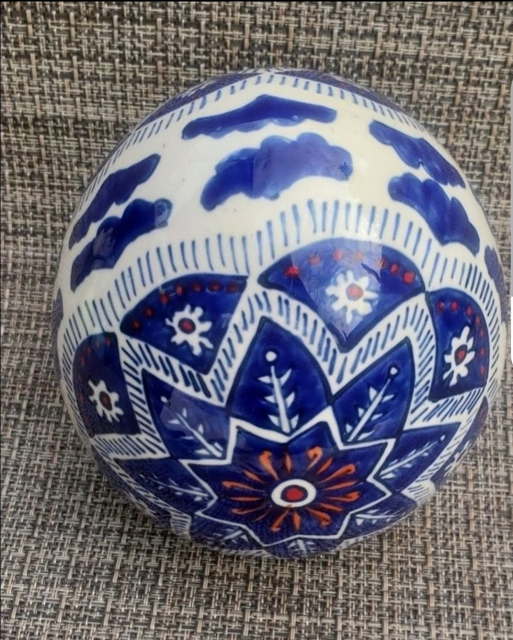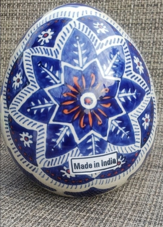 Beautiful decorative egg. Intricate blue and white floral design. Made in India. Perfect for Easter or home decor.