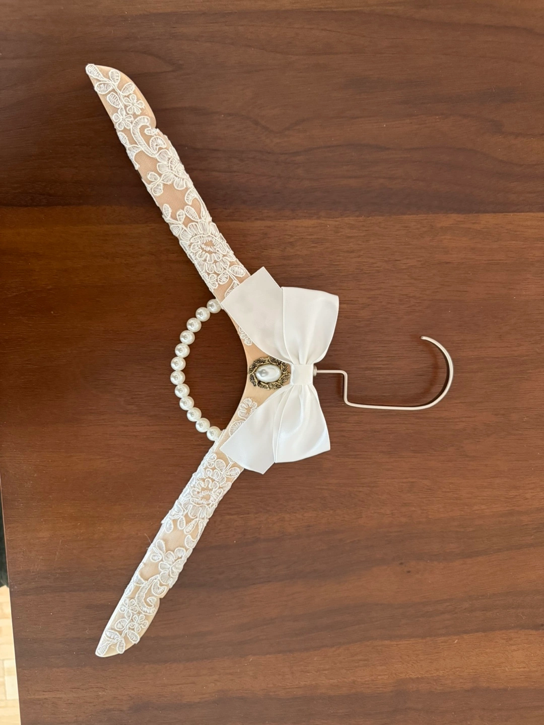 Elegant Bridal Dress Hanger with Pearl and Lace Detail