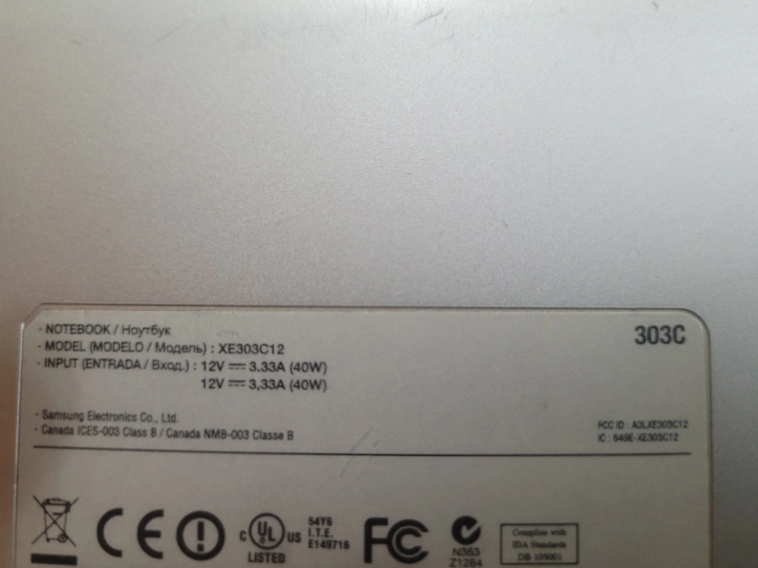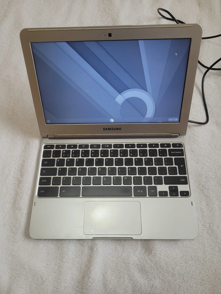 Samsung Chromebook, silver coloured. Model XE303C12. Includes power cord. Pre-owned.