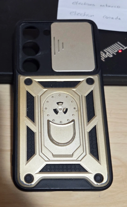 Two Samsung S 23 phones cases Gold and black colour 1 Features a ring holder and camera cover. Black colour is $10 firm Gold colour is $7 firm Or both for $15 firm