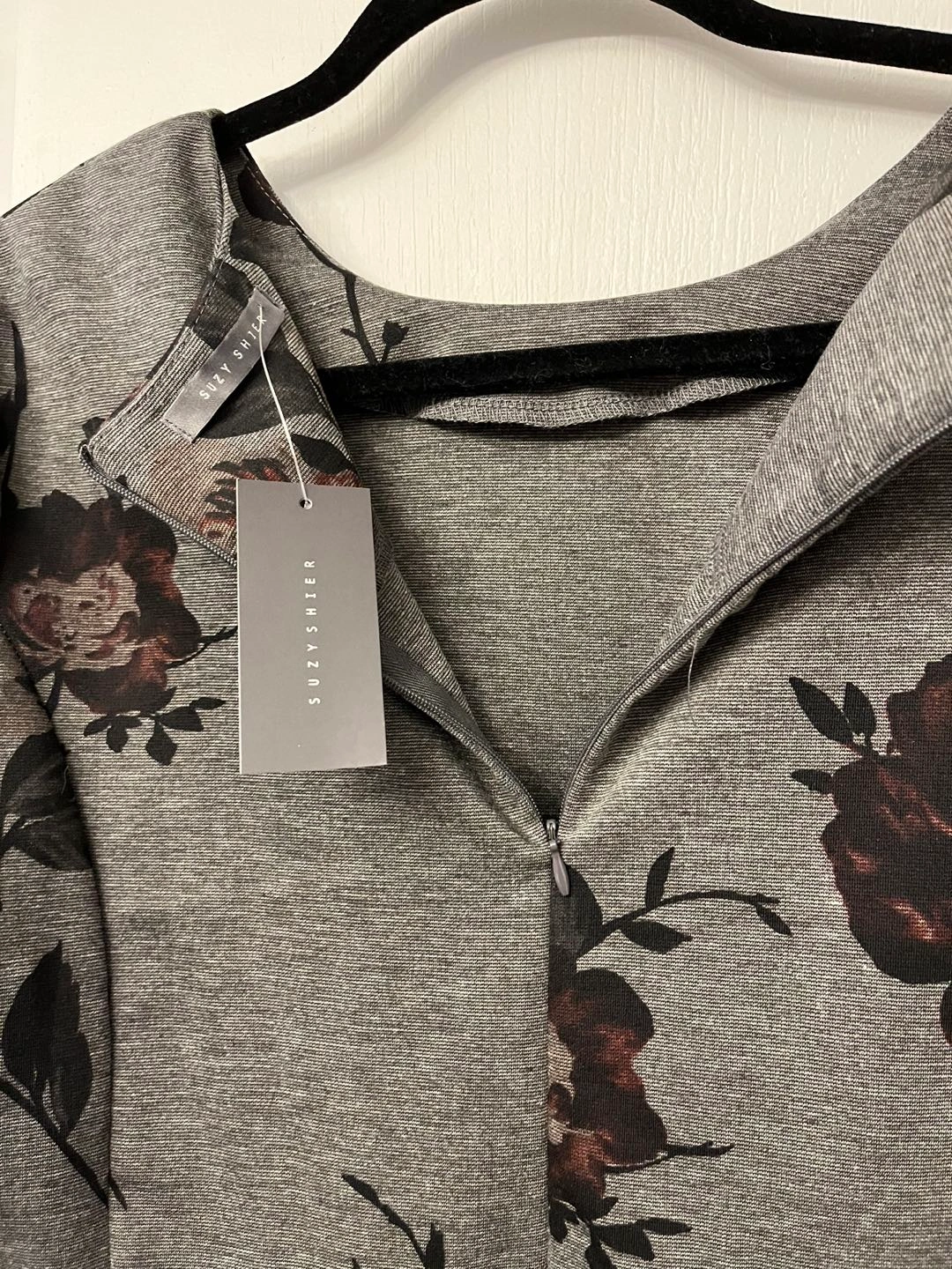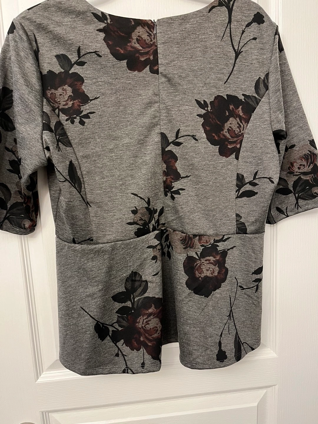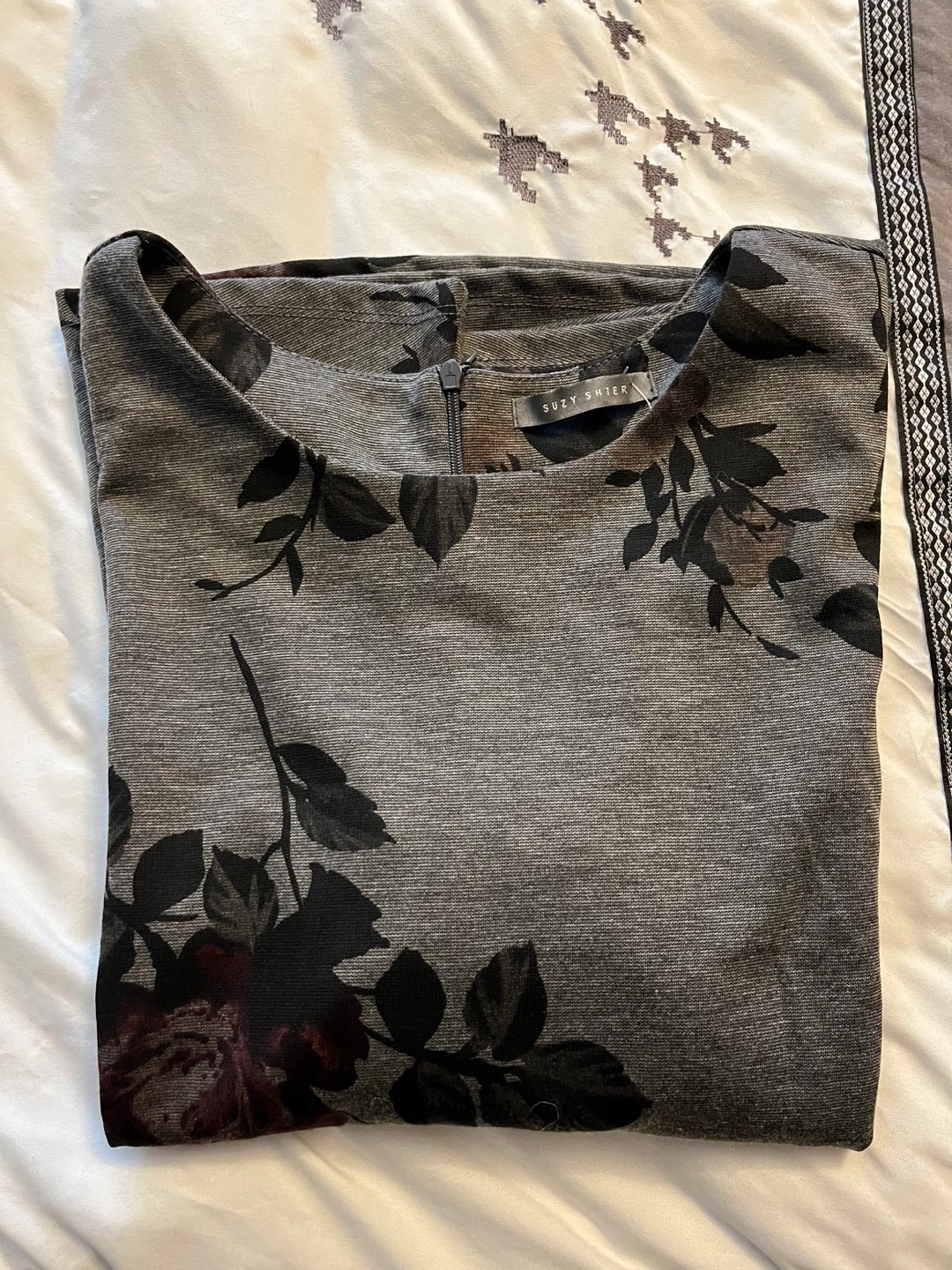 Brand new w/tags. Ladies SUZY blouse. Short sleeve. Zipper closure at back. Material soft and has stretch.