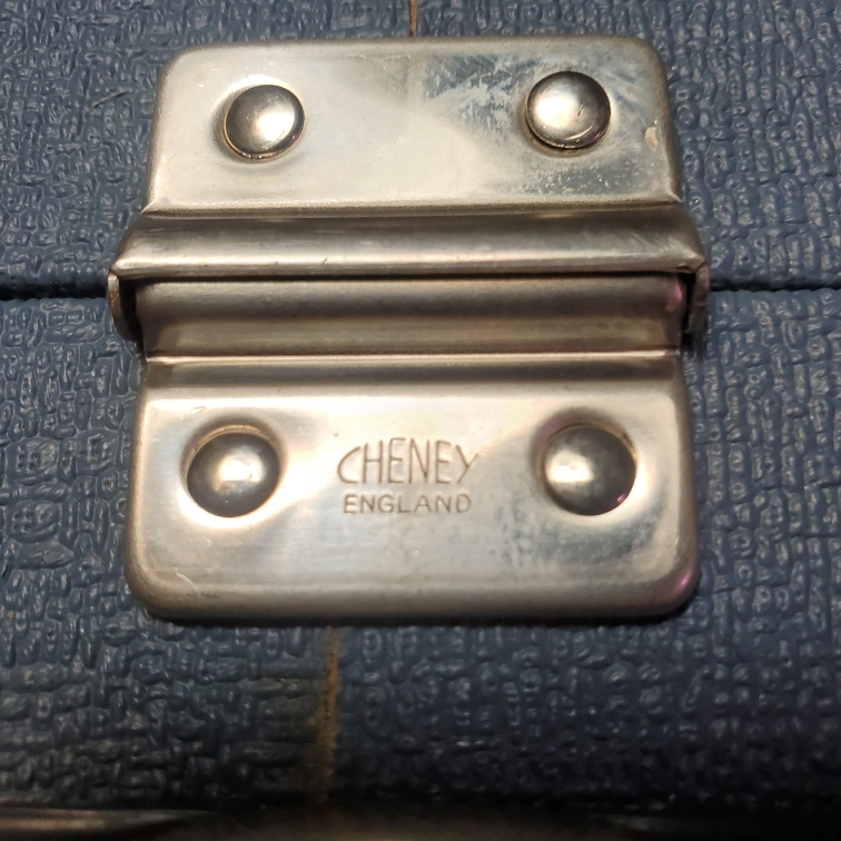 1950's hard Suitcase sky blue and chrome hardware by Cheney England with Satin inside complete with pockets and dviders Mint