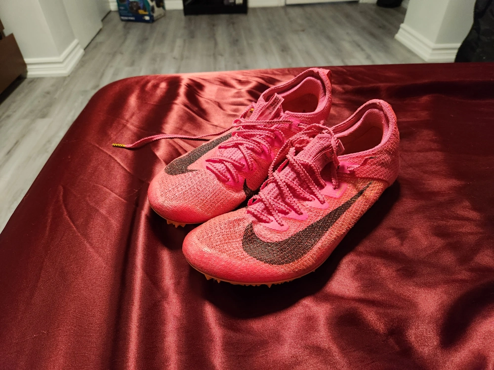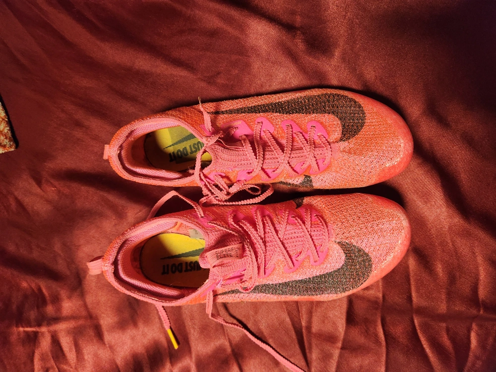Pink Unisex track spikes. Good condition. Size 9. Lightweight and breathable design. Ideal for runners.
