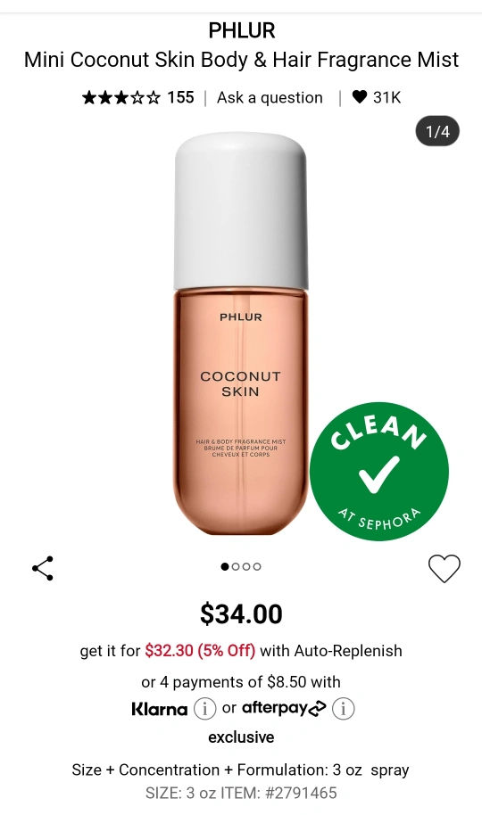 PHLUR Coconut Skin Hair & Body Fragrance Mist