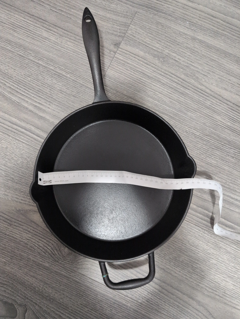 Lagostina New Cast Iron, 12-in Skillet, Heavy-Gauge Body, Pouring spouts, no Seasoning Required, Superior Heat Retention, Induction, Oven Safe 500°F, Black. open for Negotiation. Used once.
