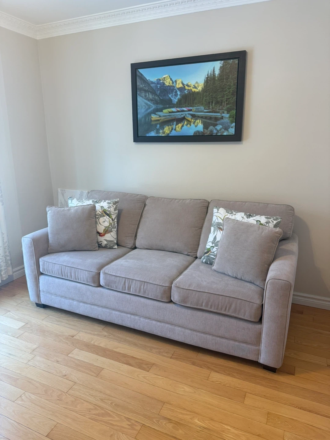A comfortable sofa that easily converts into a bed. This sofa bed is perfect for maximizing space in your home, offering seating and sleeping options in one. It's a practical addition for hosting guests.