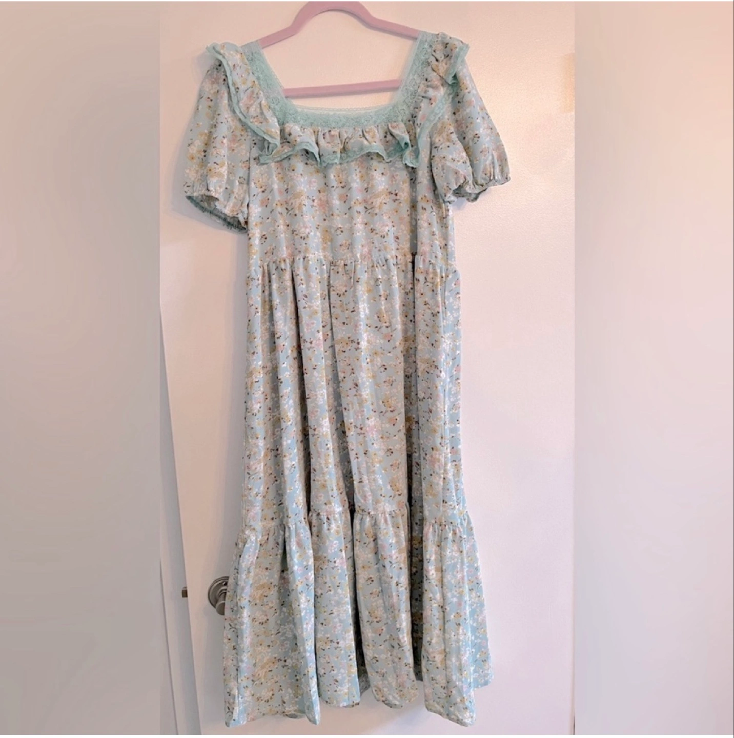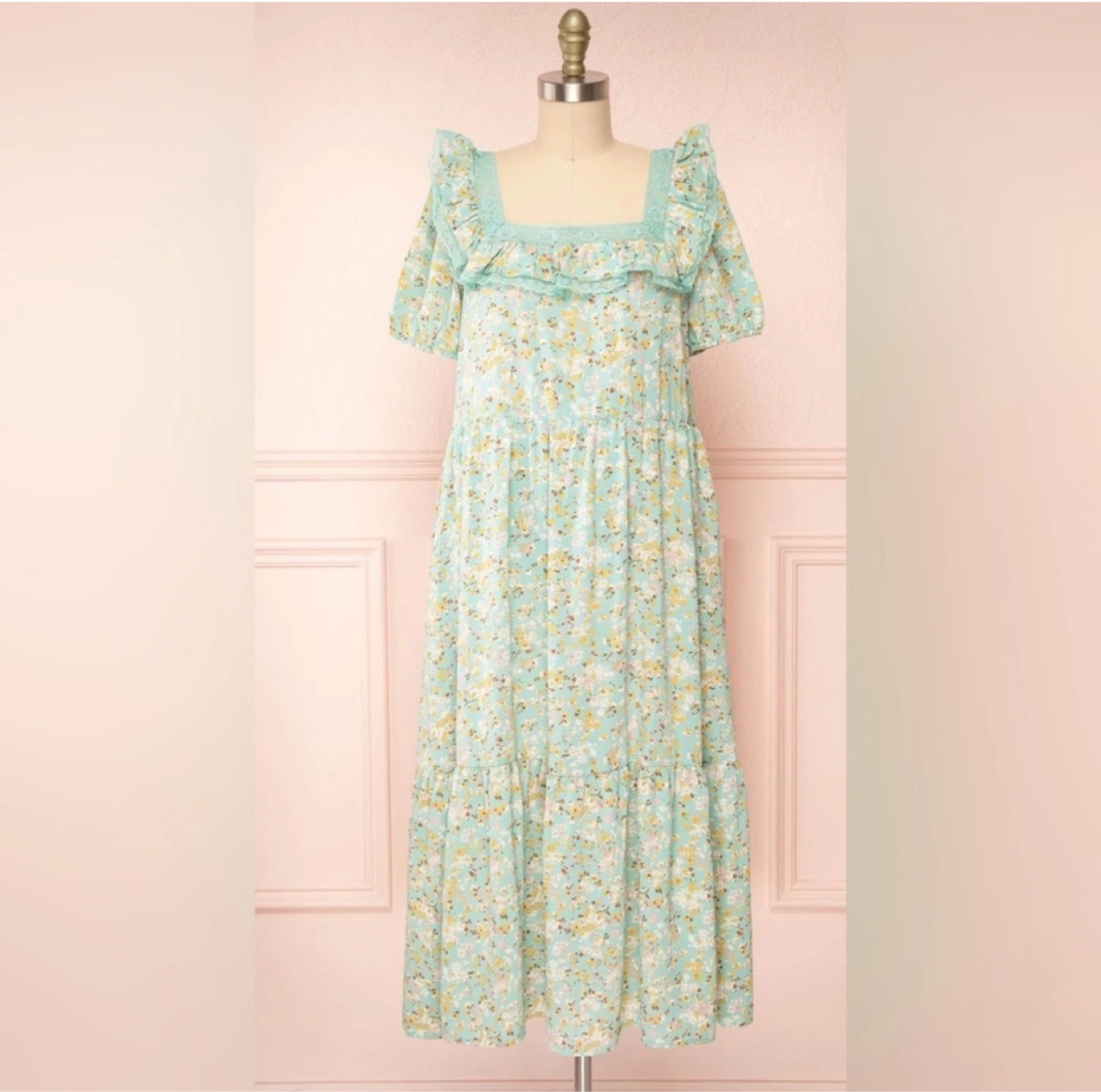 New floral midi dress purchased from Montreal boutique. Perfect to welcome spring. Cottagecore and romantic. Very soft fabric.