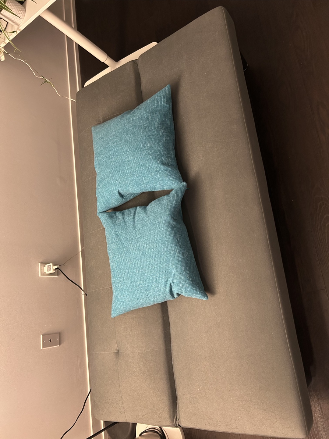 1 / 31 / 3Buy & SellGrey Futon Sofa Bed (with Pillows)Grey Futon Sofa Bed (with Pillows)$100Comfortable futon. Folds down as a decent bed. Dark grey microfiber. Includes two teal accent pillows. Great for small spaces.ConditionLike newWHERE TO MEETCheck LocationView MapSELLERverifiedKaiChurch and Wellesley1224 reviews5 chats·1 favorites·122 viewsSEND CHAT TO SELLERHi Kai! I’m interested in your listing.Hi Kai! I’m interested in your listing.Get the Karrot app to chatSign In to chat