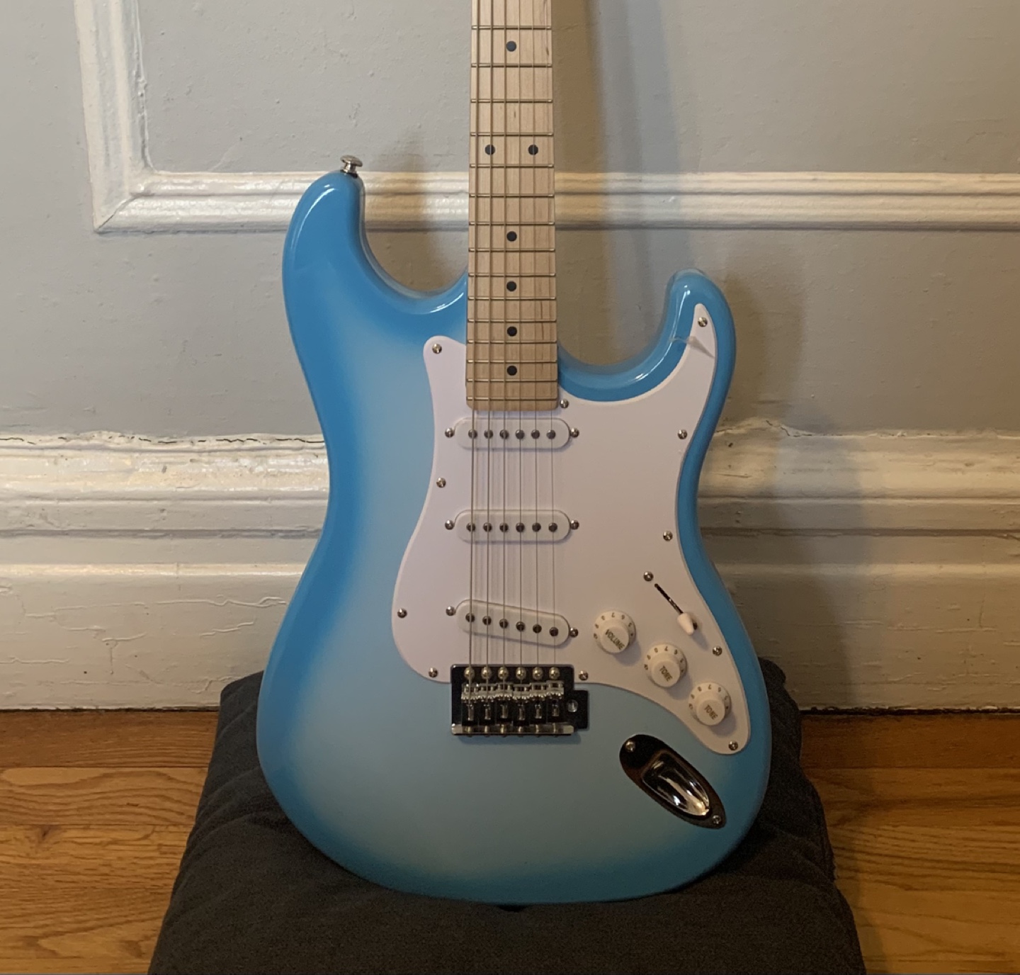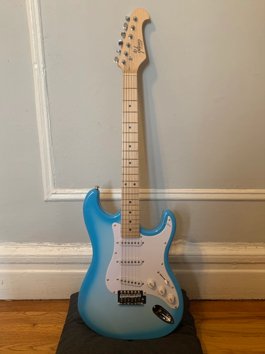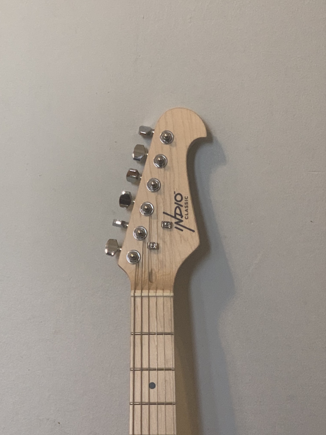 Indio electric guitar. Light blue finish. Six strings. Excellent condition. Comes with Indio case and strap. NYC Pickup.
