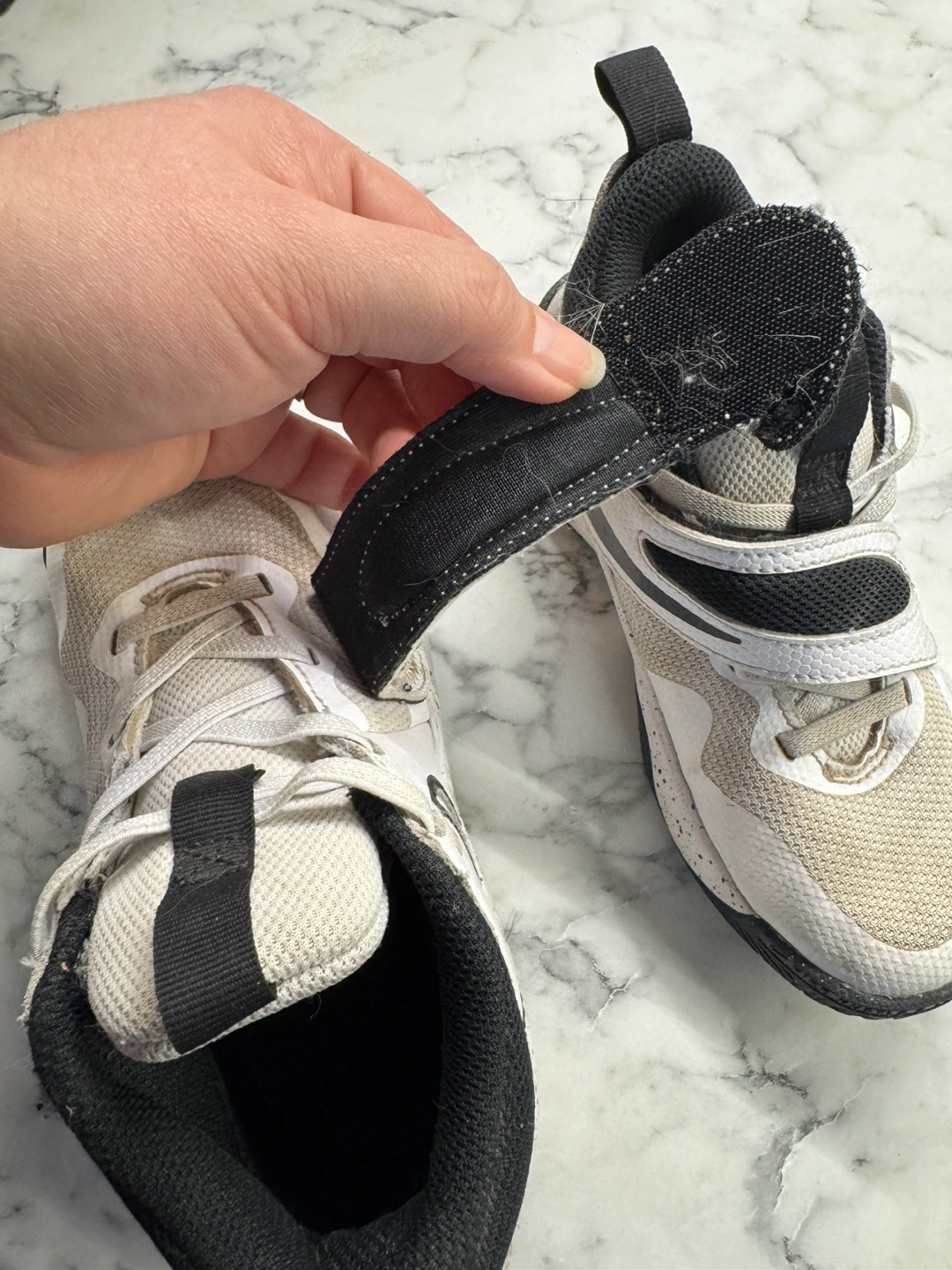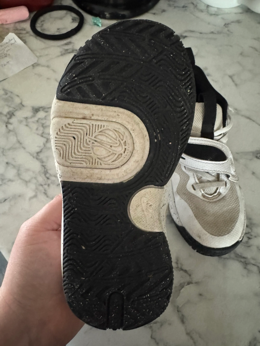 Very Lightly used Nike basketball shoes. Size 12C US. Velcro straps. White and black colour. Excellent condition as he barely used them. Pick up north kildonan.