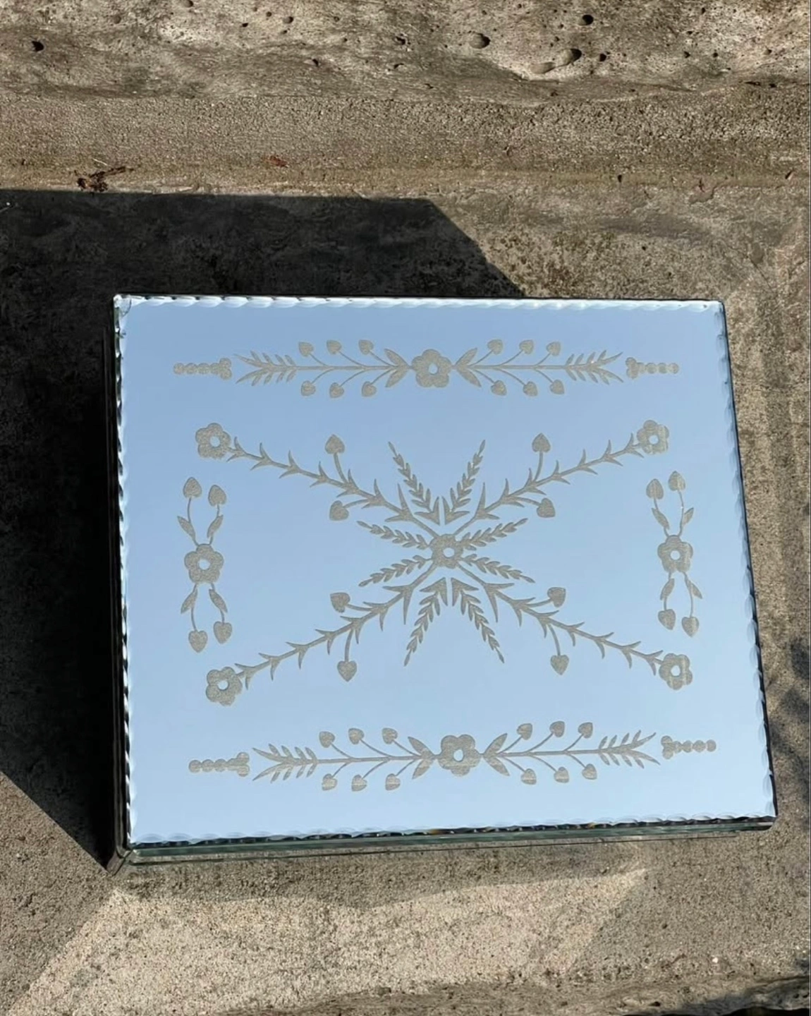 Mirrored Jewelry Box with Floral Etching