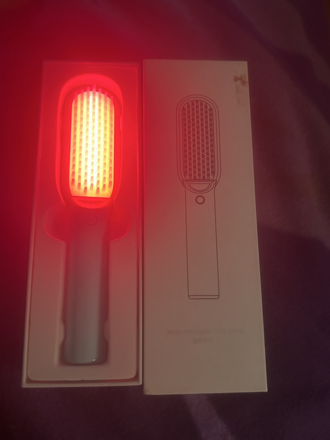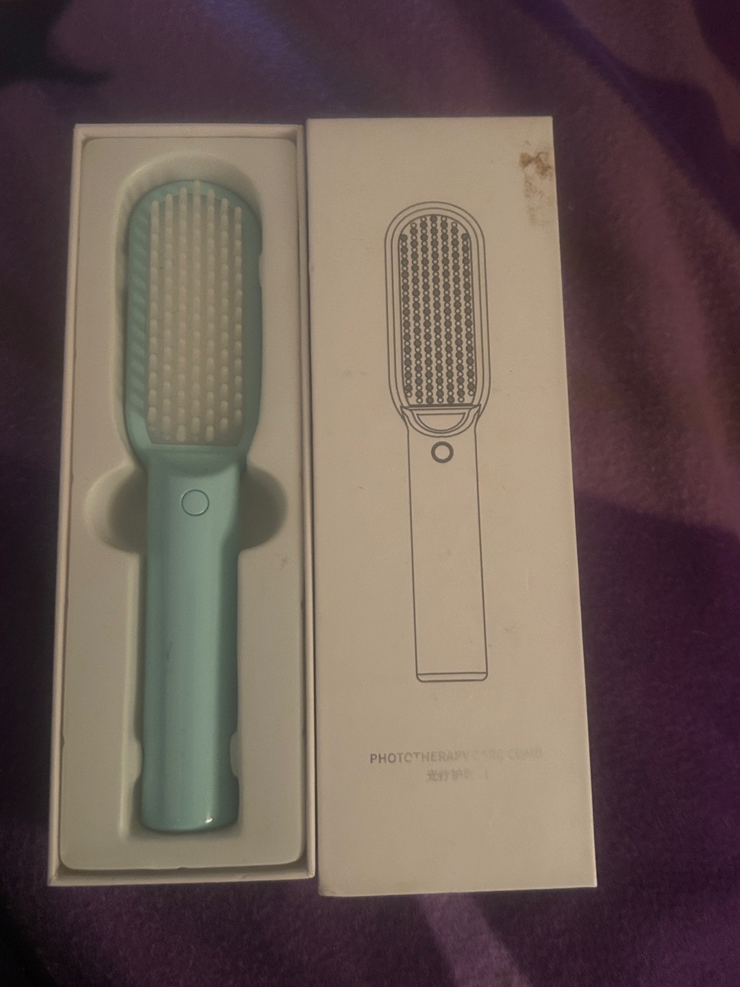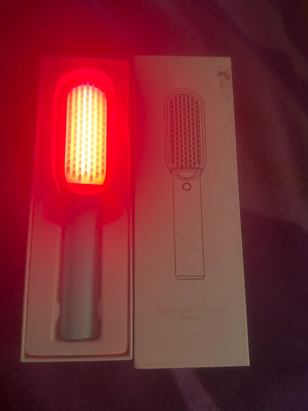 LED light therapy hair brush. Comb features red light setting. Great for hair growth and scalp health. Comes in original packaging with charging cord.