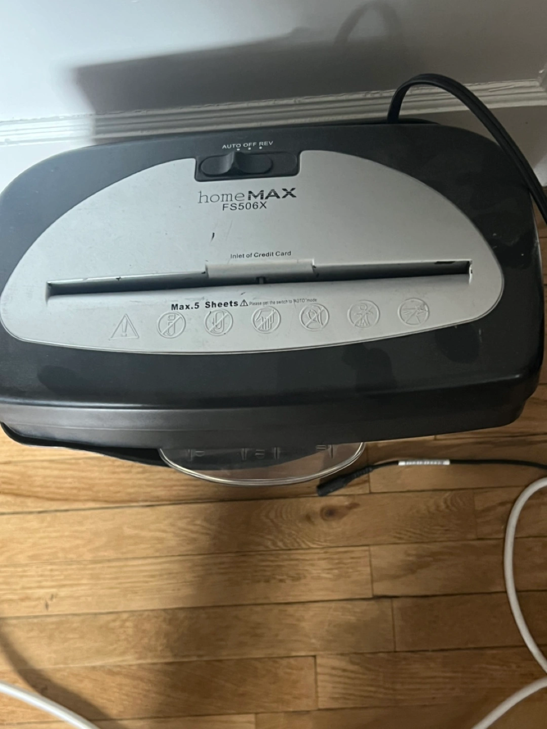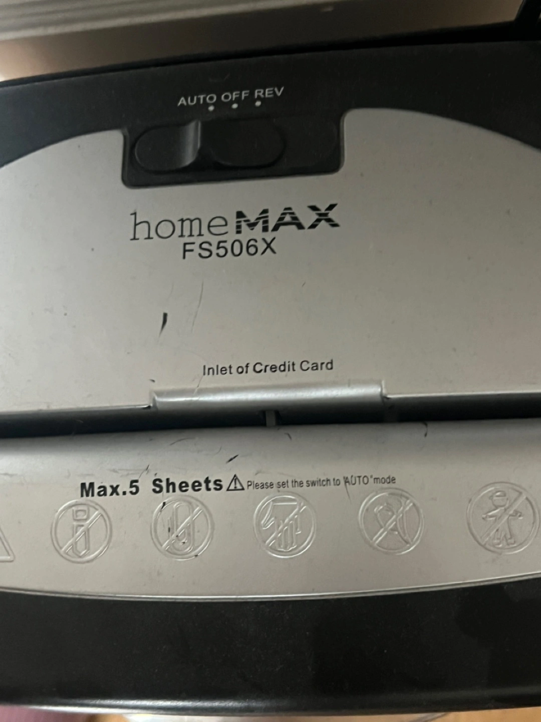 Buy & SellhomeMAX FS506X Paper ShredderhomeMAX FS506X Paper Shredder$14HomeMAX FS506X paper shredder. Shredds up to 5 sheets at once. Includes credit card slot. Used, minor wear.ConditionLike newBrandhomeMAXWHERE TO MEETDollaramaView MapSELLERverifiedDebWoodbine Beach750 reviews5 chats·5 favorites·63 viewsSEND CHAT TO SELLERHi Deb! I’m interested in your listing.Hi Deb! I’m interested in your listing.Get the Karrot app to chatSign In to chat
