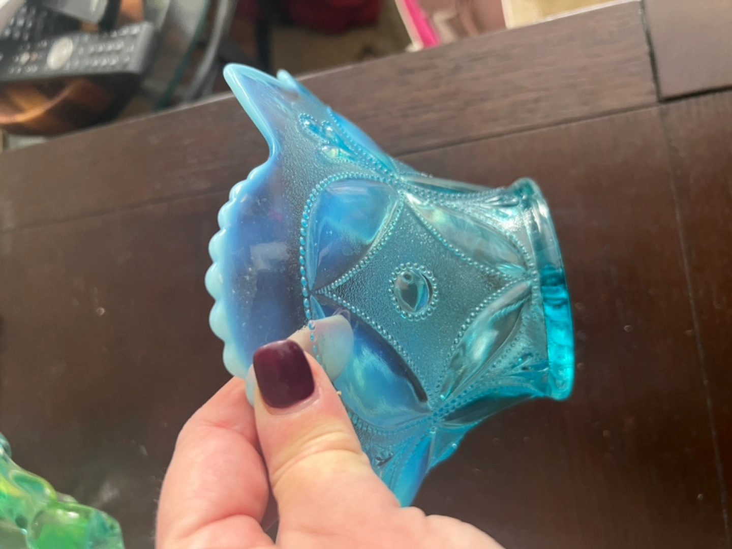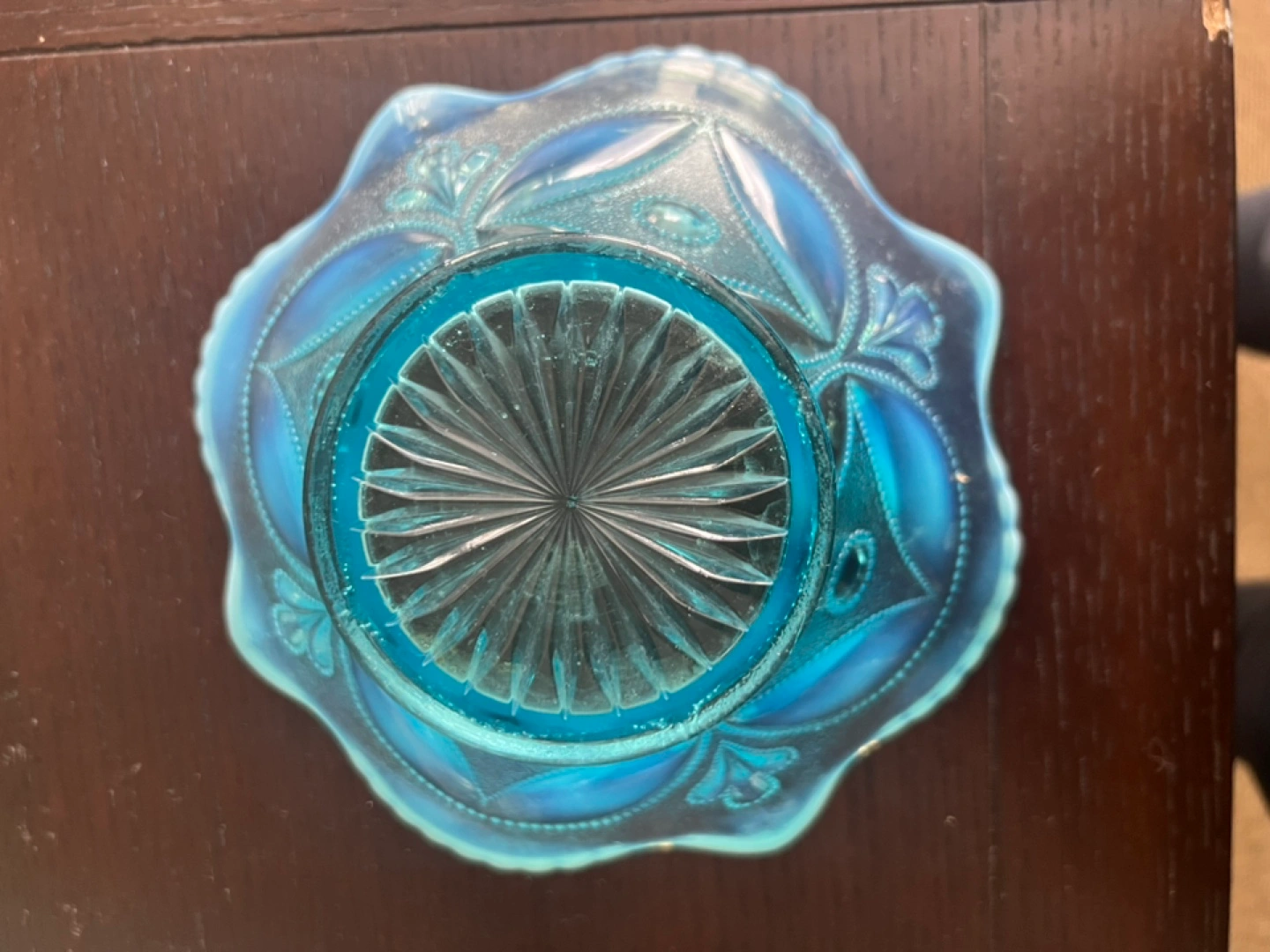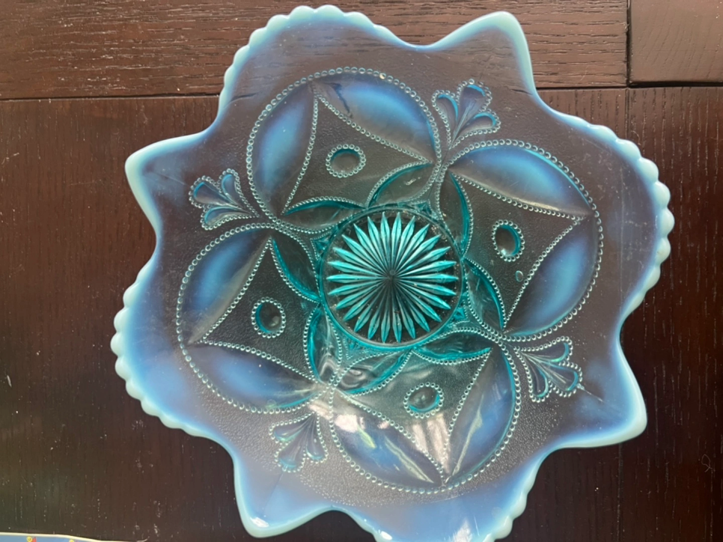 Buy & SellVintage Blue Opalescent Glass BowlVintage Blue Opalescent Glass Bowl$45Beautiful vintage opalescent glass bowl. Features a unique design and scalloped edge. Perfect for display or use. Light blue turquoise colour.WHERE TO MEETDollaramaView MapSELLERverifiedDebWoodbine Beach750 reviews0 chats·0 favorites·14 viewsSEND CHAT TO SELLERHi Deb! I’m interested in your listing.Hi Deb! I’m interested in your listing.Get the Karrot app to chatSign In to chat