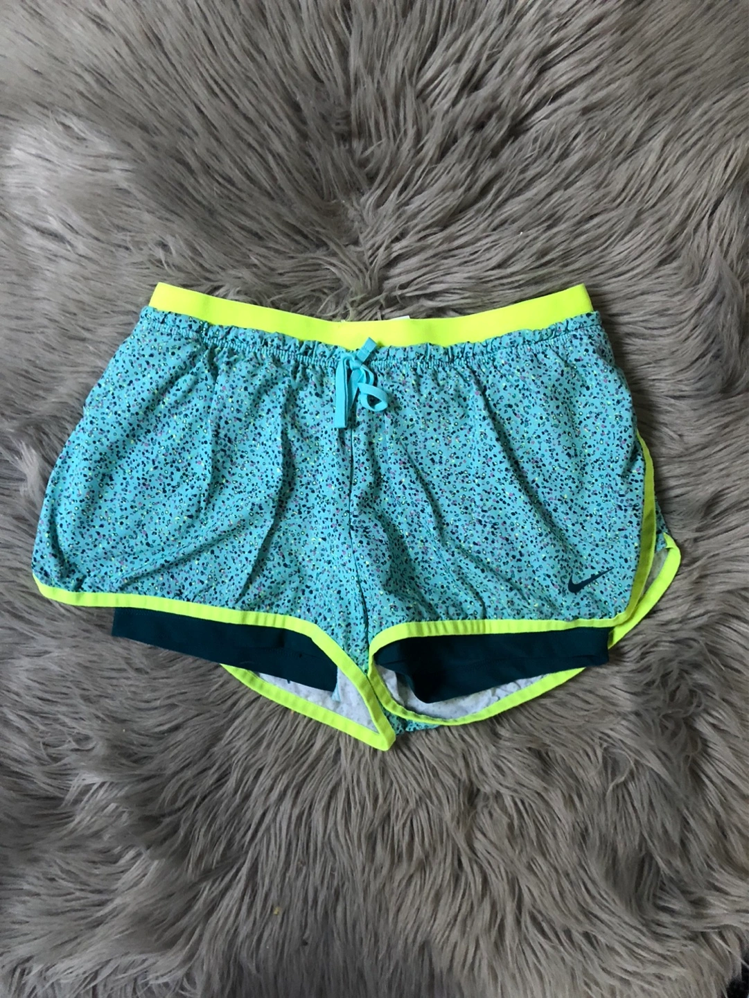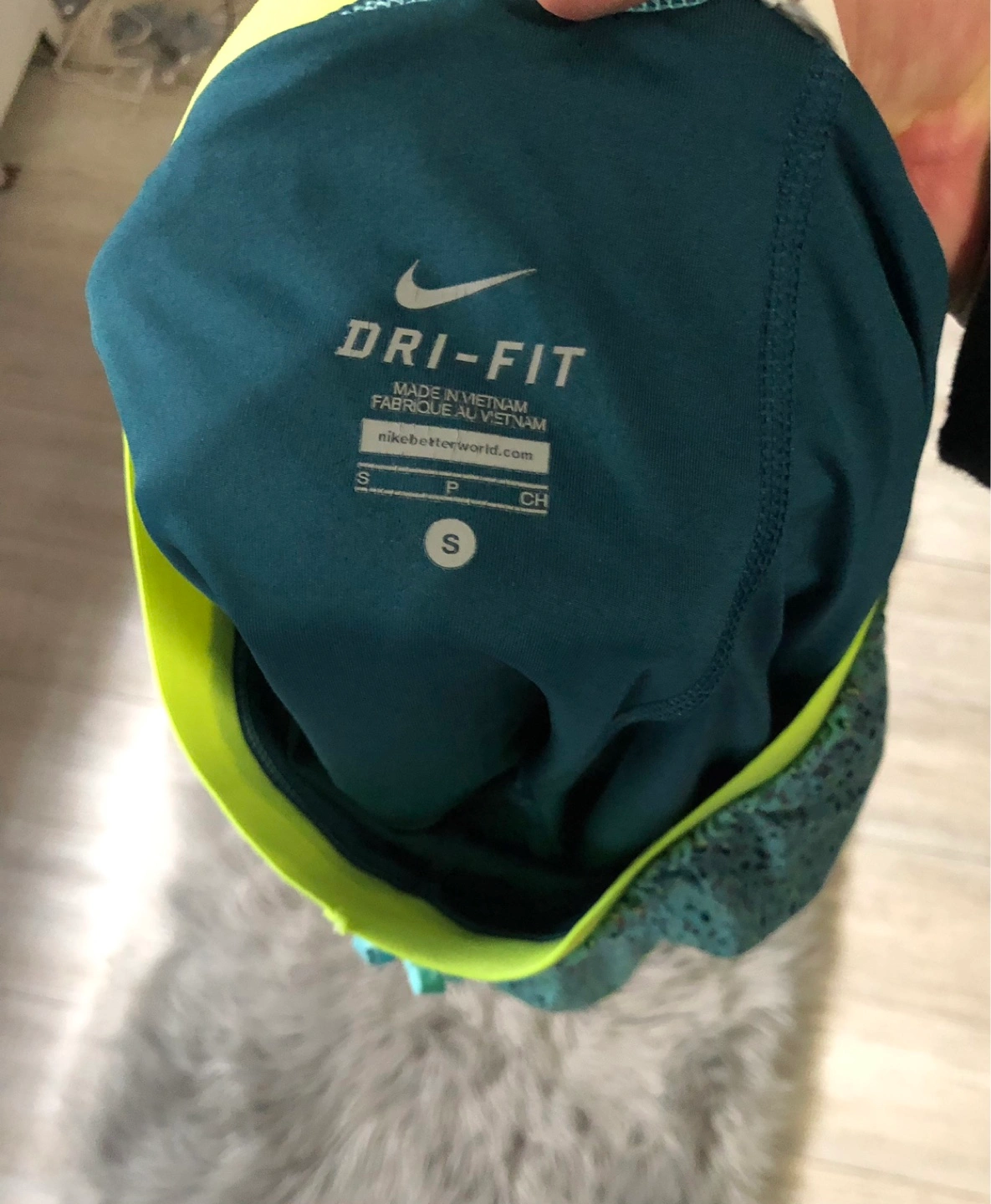Three pairs of women's athletic shorts. Size small. Nike shorts feature Dri-Fit technology. Various colors and patterns. Great for workouts. Pick up only