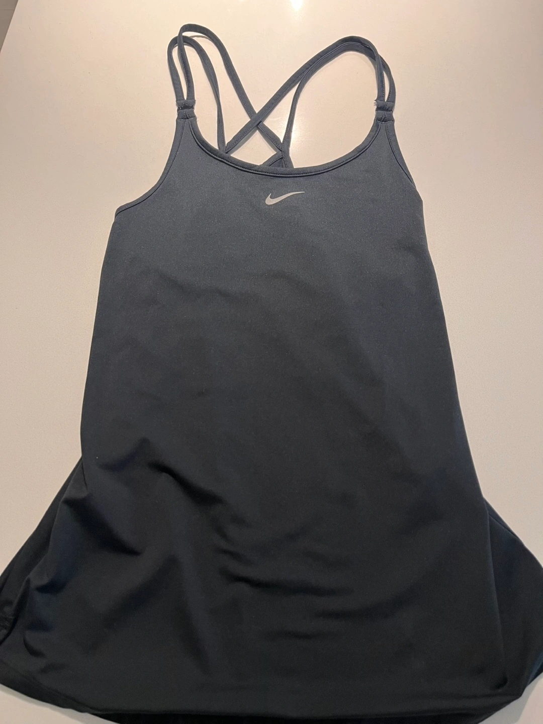 Workout tank top. Black. Racerback style. Cross straps at back. Lightweight material. Great for the gym or casual wear.