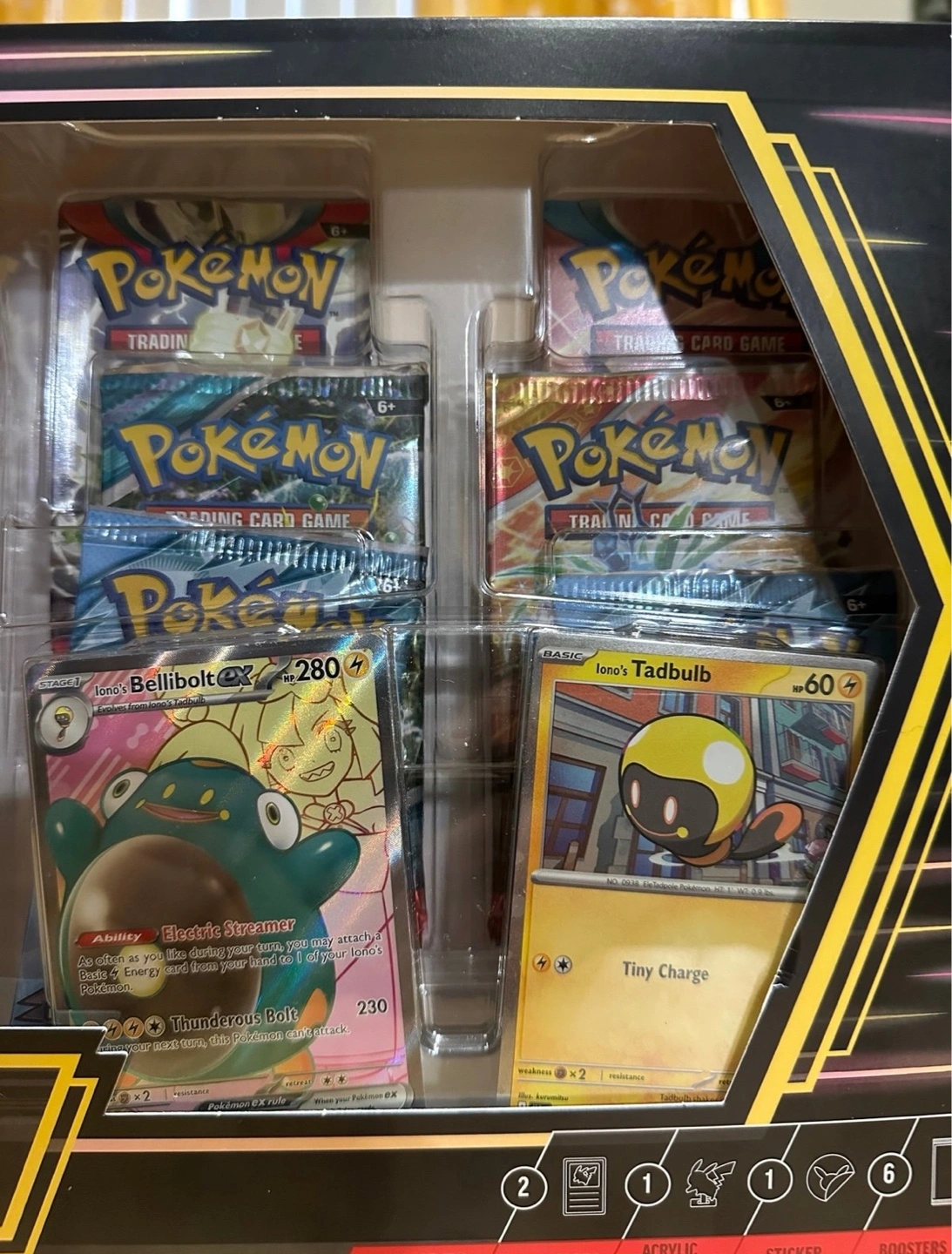 Sealed Pokemon TCG Premium Collection. Includes Iono's Bellibolt ex card, promo cards, acrylic standees, and more.