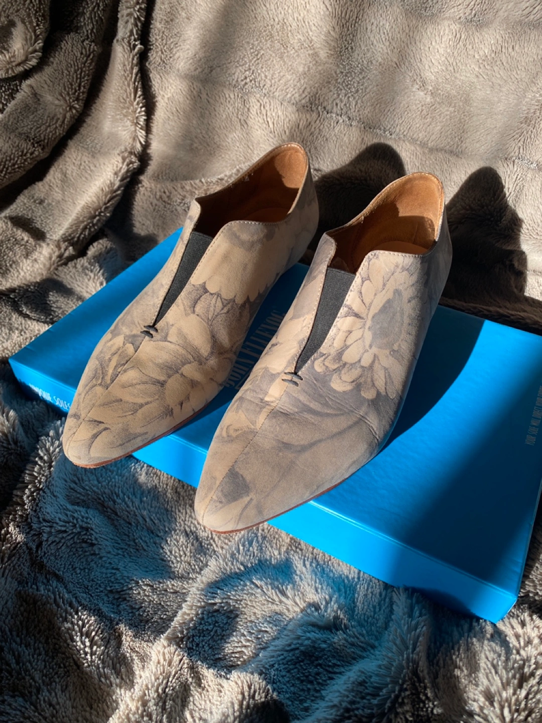 Beautiful grey floral slip on shoes. Size 7 (also have them in a size 8 for sale)
