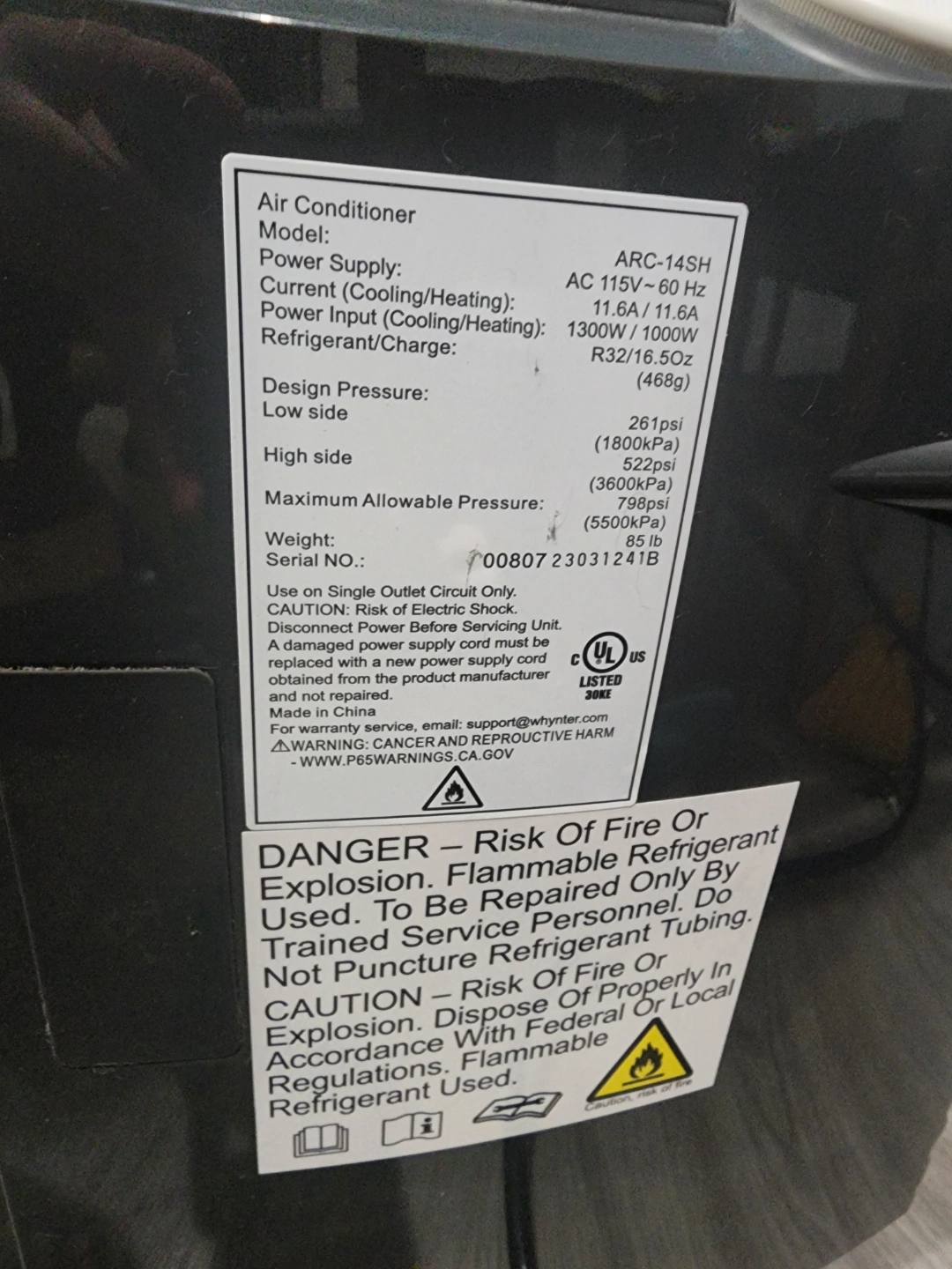BTU Cooling Rating (ASHRAE)/(DOE SACC) 14000/9500