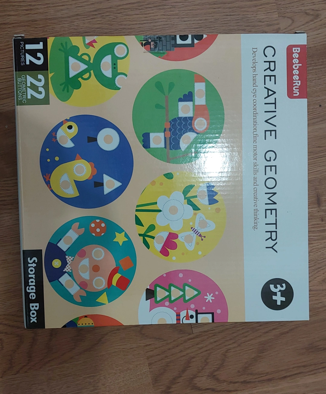 12 pictures, 22 geometric buttons. Develops hand eye coordination, fine motor skills and creative thinking. Ages 3+